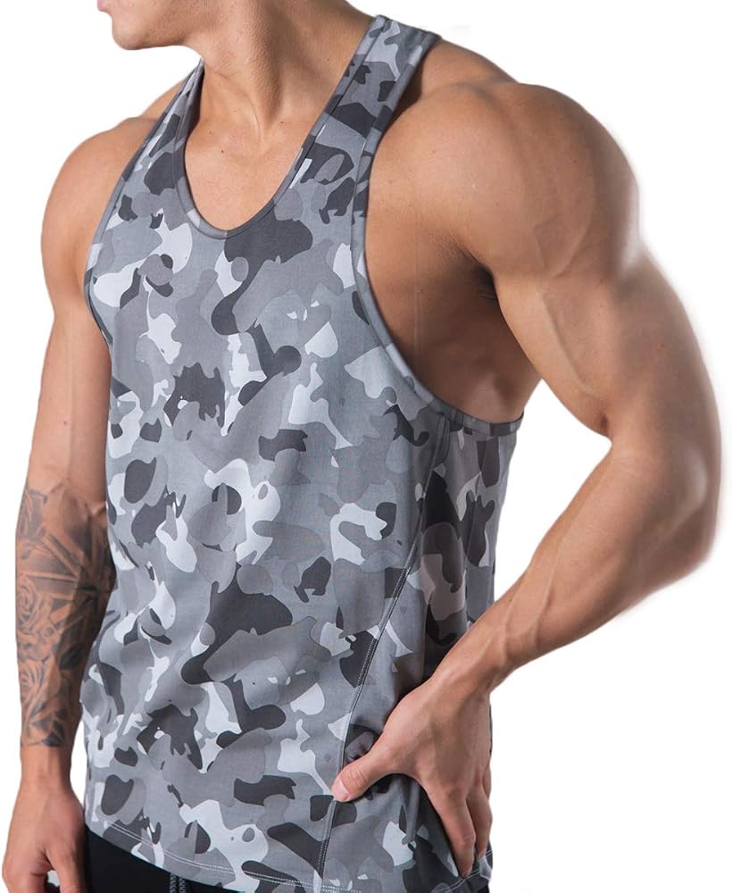 التصميم - تتميز قمصان الصالة الرياضية هذه للرجال بتصميم سترة أكثر صرامة مع ظهر على شكل حرف Y، وتتميز بمنحنى عميق من قمصان بدون أكمام للكتف مناسبة لإظهار اللياقة البدنية لمرتديها وتسمح بأقصى قدر من الحركة. مع جسم طويل لمزيد من التغطية عند المزج أو القرفصاء أو القفز. تجعلك الطباعة الظلية المموهة أكثر إثارة للإعجاب وحيوية عند الدخول إلى صالة الألعاب الرياضية وخارجها.