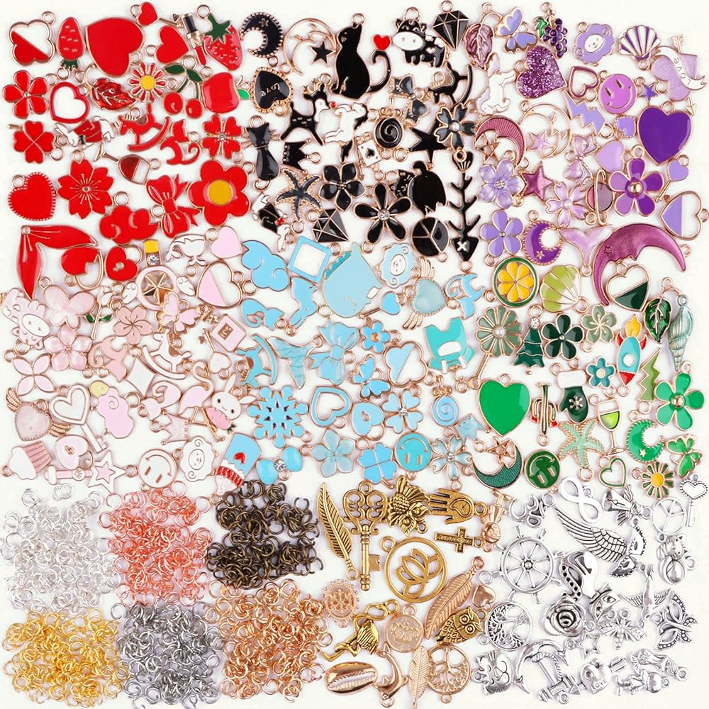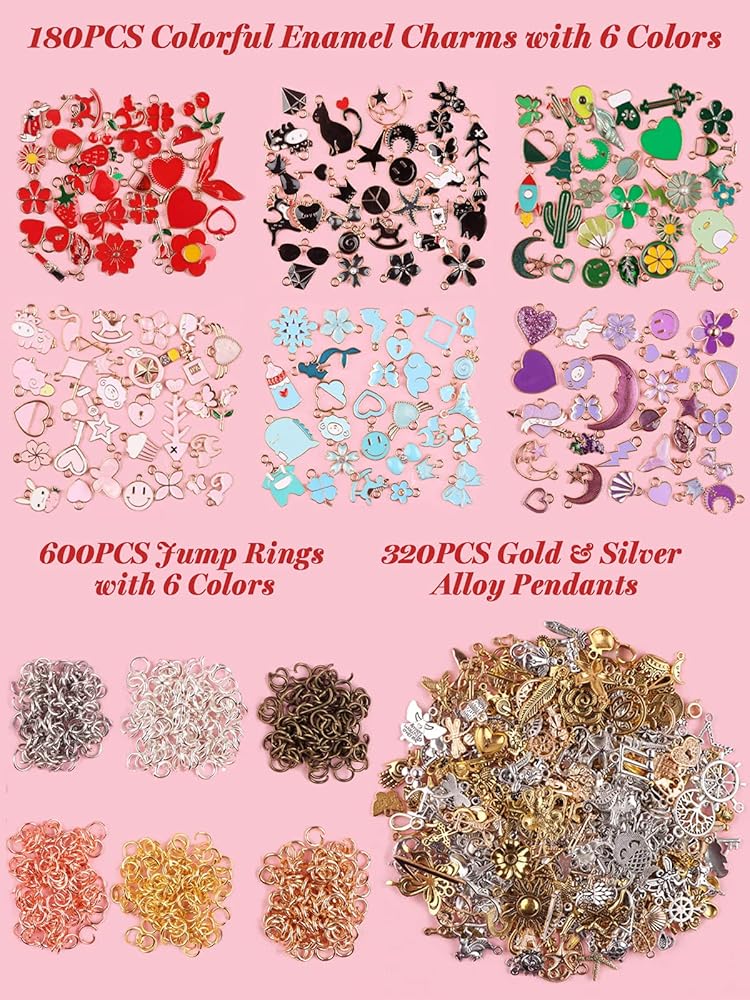 📿 Package Include: You will receive 500pcs assorted charms for jewelry making, 180pcs in colorful gold enamel, 320pcs in ancient silver, gold and kc gold with 600pcs open jump rings. Large quantities can easily meet your needs for DIY crafts.