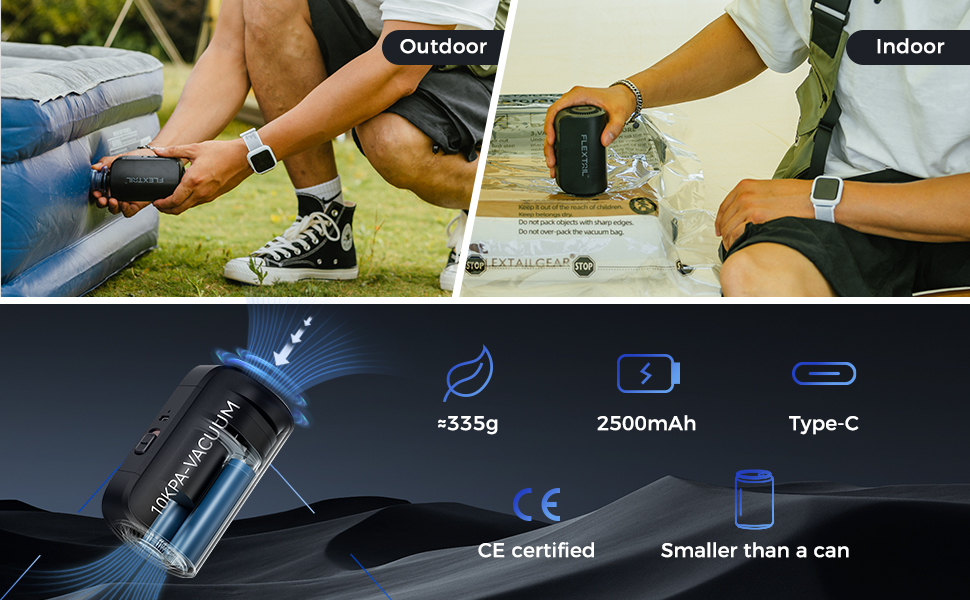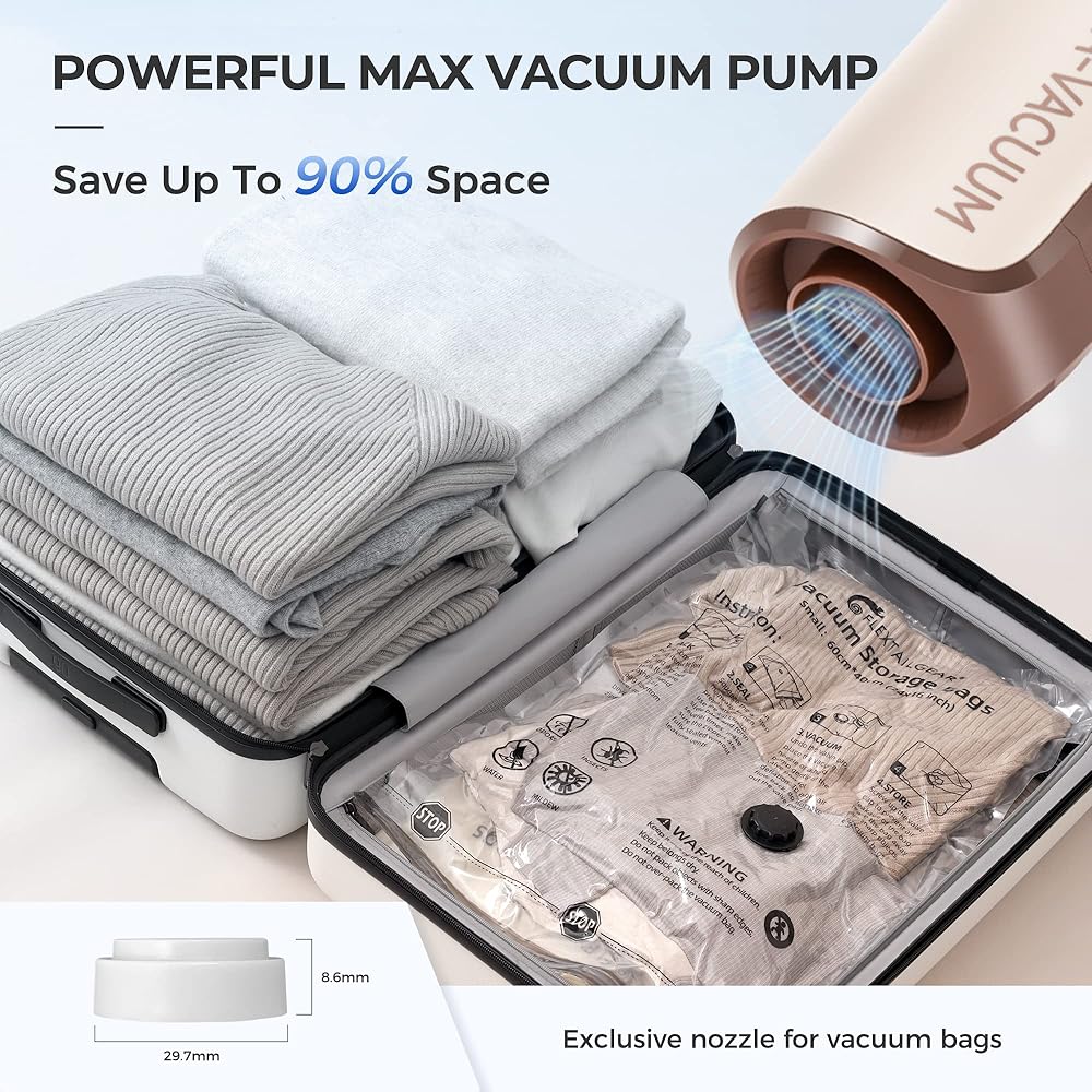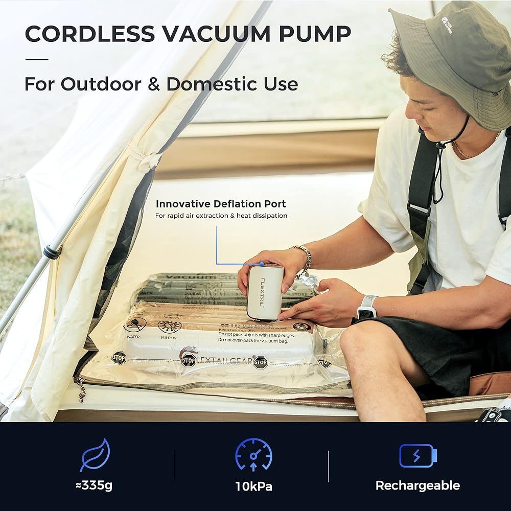 مضخة تفريغ فليكستايلجير 10 كيلو باسكال لمرتبة هوائية ذاتية النفخ، مضخة هواء كهربائية محمولة لأكياس المكنسة الكهربائية للملابس والتخييم، بطارية مضخة تفريغ قابلة لإعادة الشحن USB C