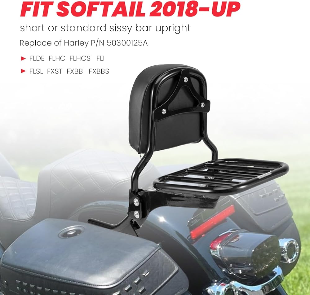 رف الأمتعة الرياضي متوافق مع Holdfast Sissy Bar Uprights Fit 2018-Up Harley Davidson Deluxe FLDE Softail Standard FXST Street Bob FXBB FXBBS Heritage Classic FLHC FLHCS Slim FLSL FLI