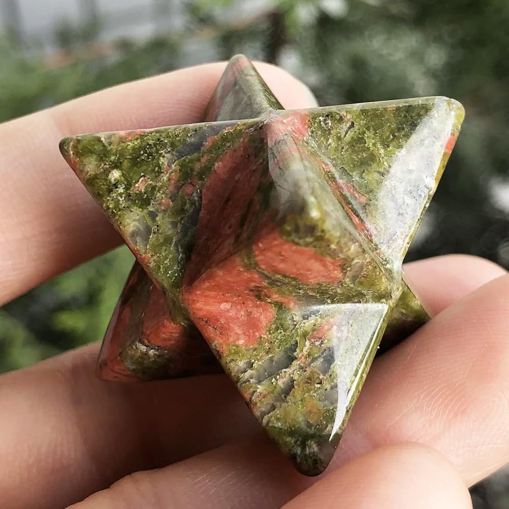 • Size of Merkaba: 1 Inch (25mm from tip to tip), weighs 25-30 grams. Package:1 Pc. Hand carved product, please allow every piece is unique, the shape, color may vary, natural cracks and frosts inside will be normal.