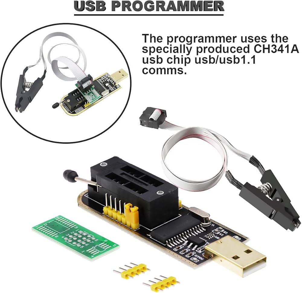 • 🎖️【WHAT IT DOES】: The CH341A programmer cooperates with various SOP test clips, sockets, and adapter boards to perform operations such as backup, erasing, programming, and calibration of various software.