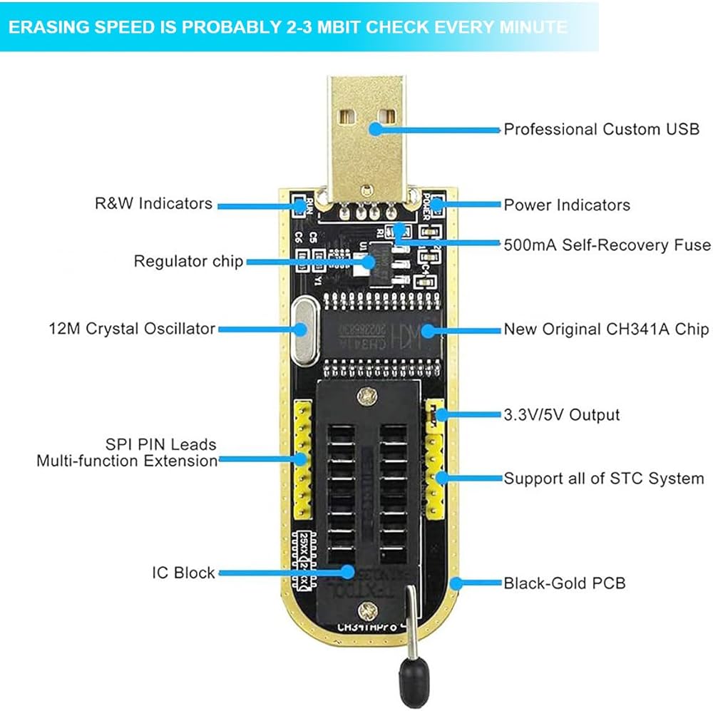 • 🎖️【SUPERIOR PERFORMANCE】: Erasing speed is probably 2-3 Mbit check every minute;Programming is faster than ordinary ATMEGA8 25 Series Programmer upto 2-3 times faster.