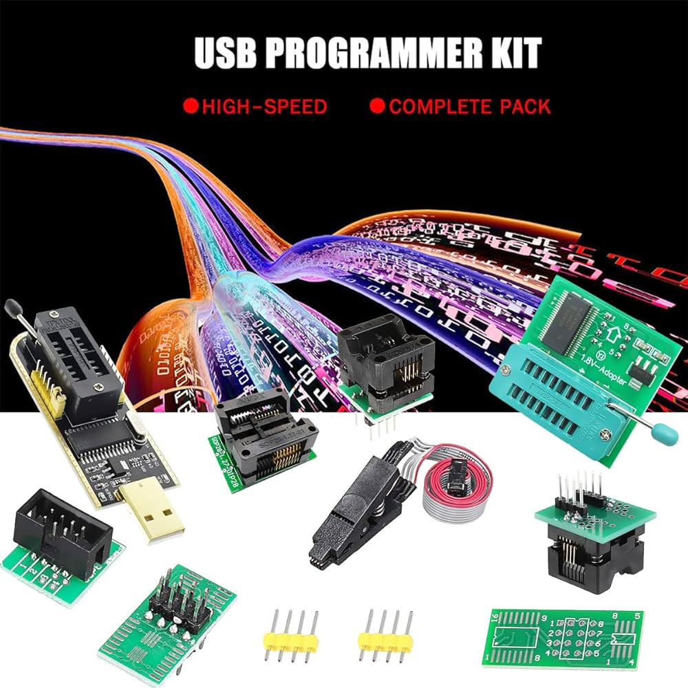 • 🎖️【PRODUCTS INCLUDE】: 1 x CH341A USB Programmer ;1 x 1.8V Adapter board;1 x SOIC-8 burning clip;1 x SOP8 150mil module;1 x SOP8 200mil module ;1 x SOP16 300mil module;1 x SOP8 IC test clip socket;1 x SOP8 IC test clip board;1 x SOP16 IC test clip board.