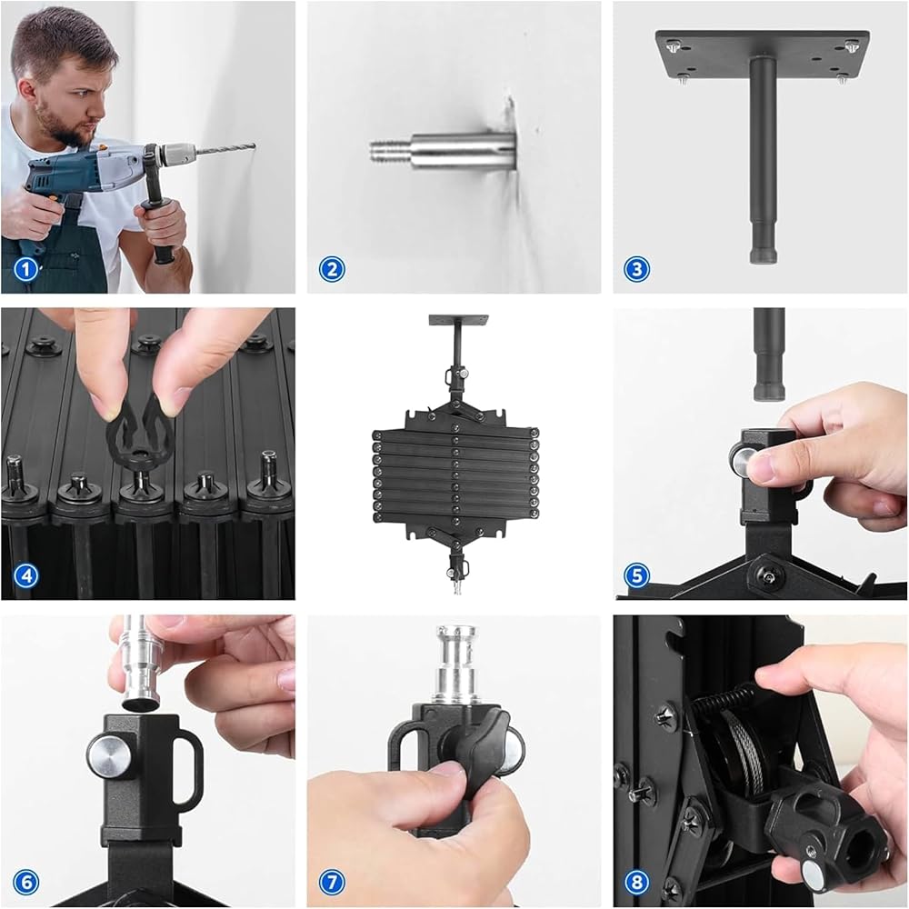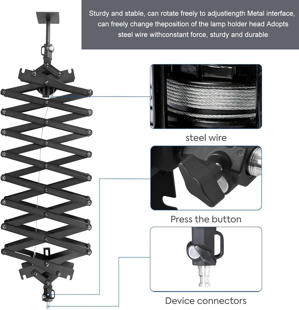 The Ceiling Rail System ultra long stretching length can reach 43-200cm, which can be freely adjusted within this range, and can be adjusted to a suitable angle for live streaming and light filling,it is Highly flexible and flexible