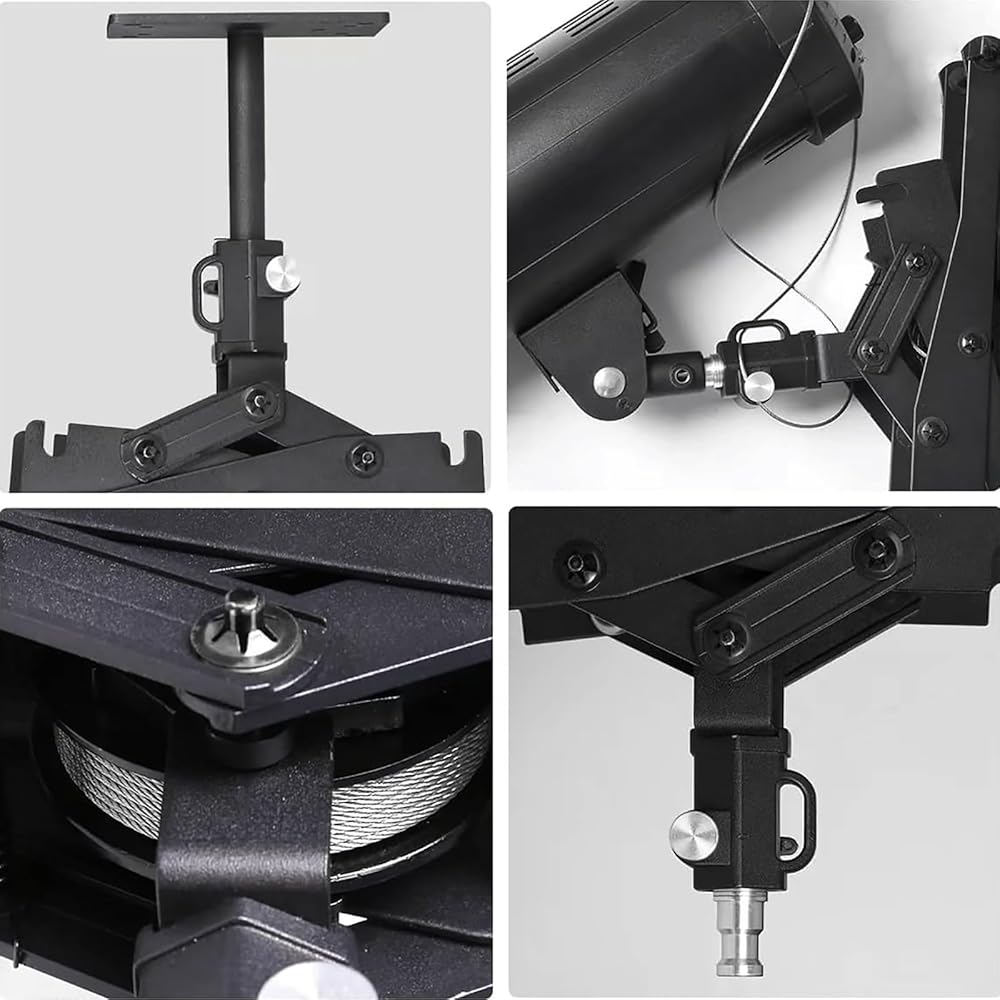 The Video Light Mount Support kit with good load-bearing capacity and a maximum load-bearing capacity of 15kg, suitable lighting fixtures can be used for matching. Equipped with clip wires, the moving light wires of the lighting fixtures are no longer tied, and safety ropes are used to bind the lighting fixtures and lifting arms to protect the lighting fixtures, ensuring safety and reliability