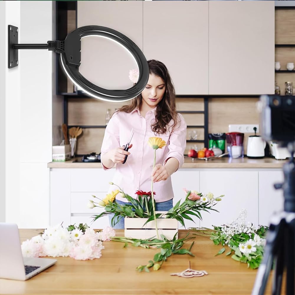 Kit includes: Telescopic boomx1, Safety wirex1, Expansion Screwx10 ,switch headx1, T-shaped hanging platex2, clampx8. NOTE:The Ring light NOT included