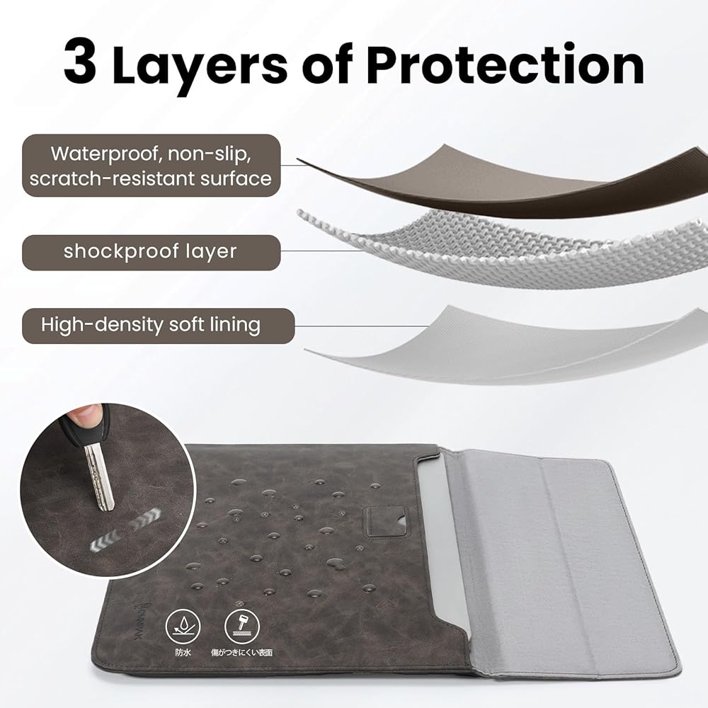 ✔ مصنوع من جلد سويدي من الألياف الدقيقة عالي التحمل ومقاوم للماء والخدش. توفر البطانة الداخلية السميكة مع بطانة فخمة امتصاصًا للصدمات لجهاز الكمبيوتر المحمول الخاص بك.