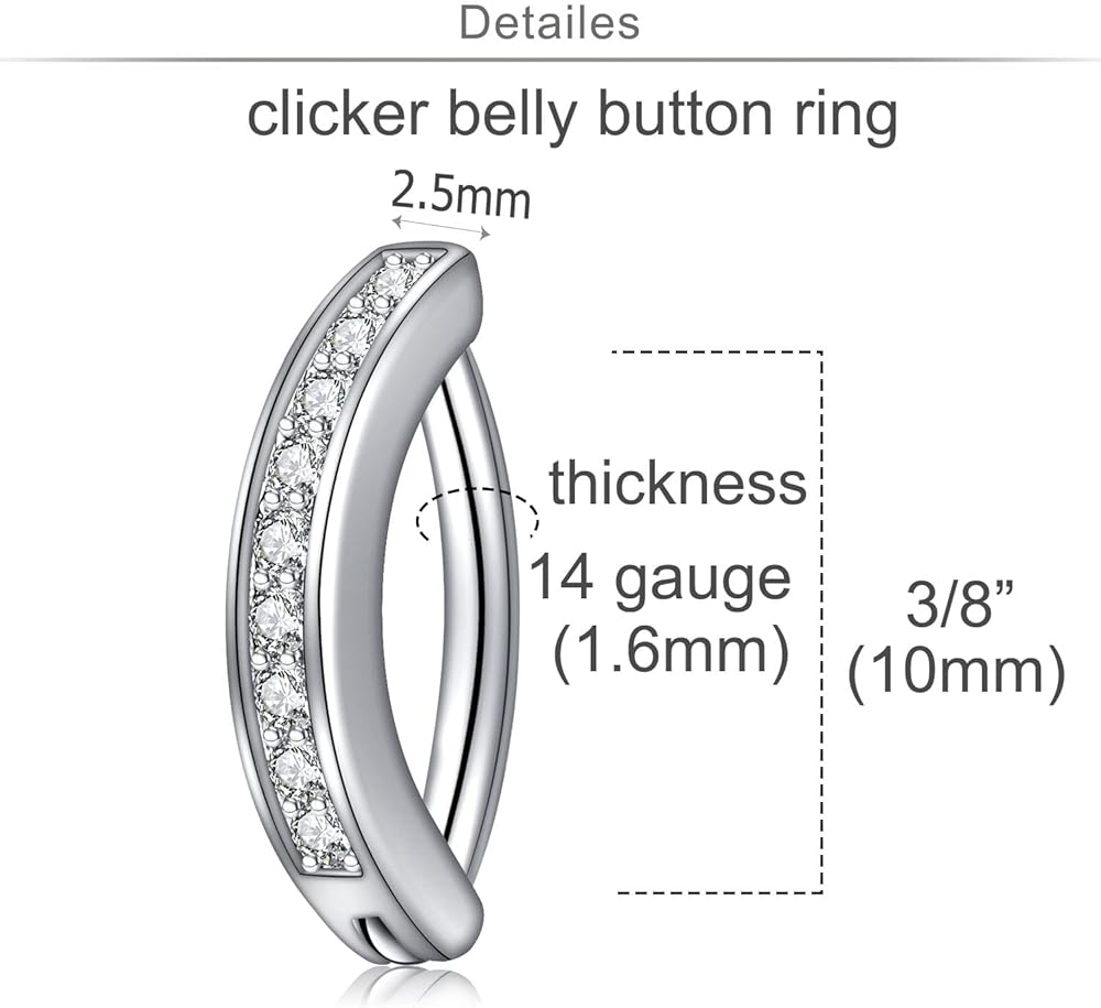 [Measurements]: Surgical steel belly button ring 14 gauge(1.6mm), belly button ring bar length 3/8"(10mm); Belly button ring clicker style wide: 2.5mm;