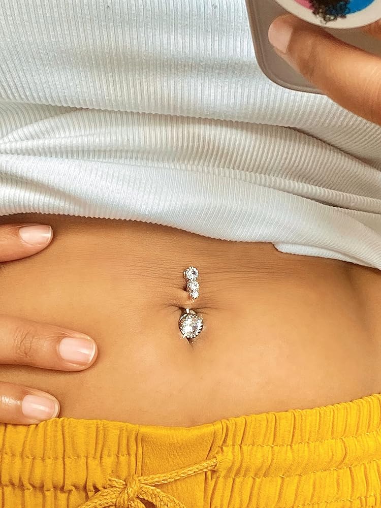 MODRSA خاتم زر البطن للنساء سلسلة بطن فضية سلسلة الخصر الفضية مجوهرات زر البطن ثقب حلقات البطن فضية سلسلة الجسم مجوهرات للنساء