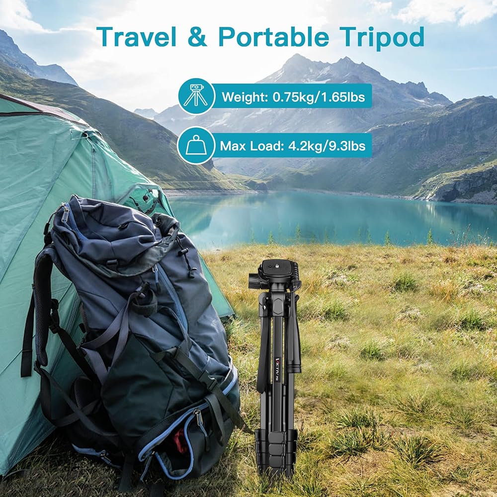 【Portable Travel Tripod】 Tripod stand comes with a convenient storage bag, lightweight and compact, weights 1.65lbs, folded size is 15.7 inches, and it's easy to transport and store.