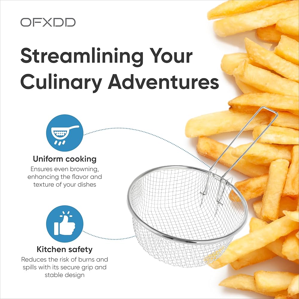 This deep fryer basket is an ideal solution for a small kitchen. The fry baskets has folding handle for easy storage. This deep fryer thermometers is made to meet the high demands of a kitchen. The wire basket for cooking is trusted and reliable. This basket for fries has detachable handle easy to hold and lift up the basket also good to storage after took it apart. The fries basket is ideal for french fries, onion rings, donuts, cheese sticks, shrimp, and more. The fry baskets commercial is dishwasher safe. This deep fry basket is made of high quality material. The fry basket handle has commercial grade quality. This fry basket with handle is good quality product. The round mesh basket is easy to clean. This deep fryer baskets only has durable wire frame weld with deep drawing straining mesh for the fry basket body. This fry mesh is suitable for deep frying, such as vegetables or poultry. The fry basket stainless is perfect for diy the french fries, potato chips,onion rings,fried chicken. The deep fry basket strainer is durable and useful.