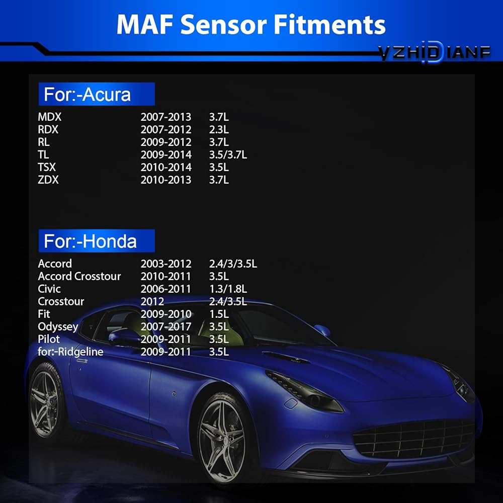 مستشعر تدفق الهواء الشامل MAF0033 يناسب: -Honda Accord Civic Crosstour Odyssey Pilot لـ: -Ridgeline لـ: -Acura MDX RDX RL TL TSX ZDX 1.3L 1.5L 1.8L 2.4L 3.5L 3.7L OE#2203-507499، MAS0244