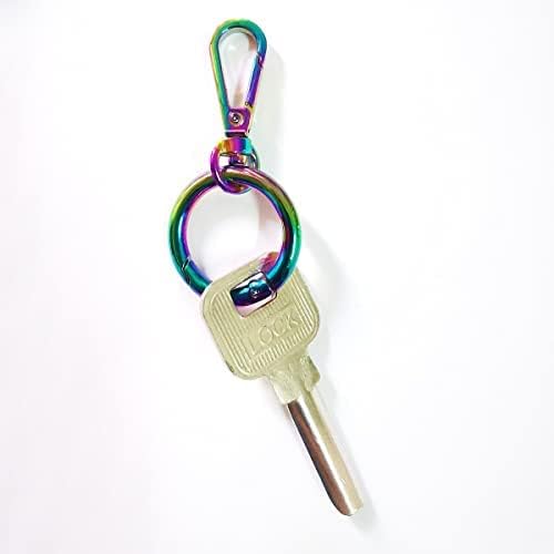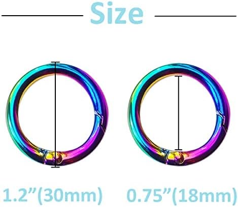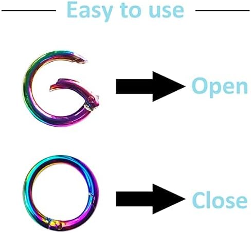 Durable and rust resistant spring rings are made of high-quality nickel Plated Zinc Alloy, hard and durable to use, with electroplated surface, rainbow appearance, prevent rust makes them use for a long time. Attractive rainbow color you would like see pretty rainbow ring, making your keys gathered and secured, to bring you good feeling, and nice gift for your friends, family. Compact connection tool buckle clips can be selected to connecting keys, carabiner, hook, clasps, and crafts, and easy to carry, organize your keys and decorate your gadgets. Wide Application used for keys, DIY projects, crafts, gadgets, dog tags, small dog leashes, handbag purse shoulder strap, creating jewelry and decoration, fasteners, pendants, links, clasps, charms, links, and much more. Easy to use built-in spring design is very convenient to use, just press in the spring, the ring fast connect others and release, and it will automatically close.no need to worry about your keys falling off. SPECIFICATION: Size: 1.2 Inch diameter Material: nickel Plated Zinc Alloy 4 Colors: rainbow Quantity: 10pcs pcs snap hook 100% SATISFACTION GUARANTEE “Why Wait!? Click “Add to Cart” to order spring ring today!