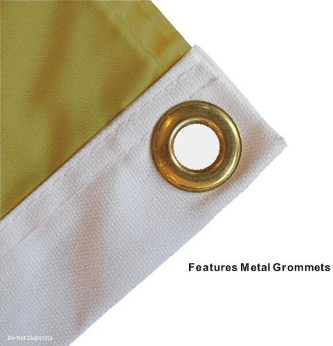 - مقاس 3 أقدام × 5 أقدام مع حلقتين معدنيتين لربطهما بعمود العلم أو عمود الباب الخلفي