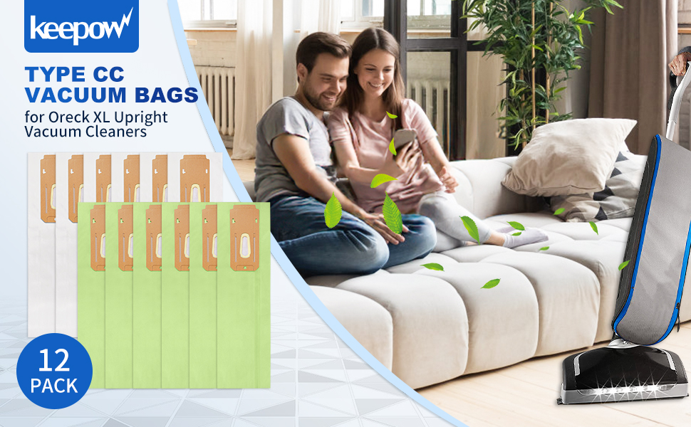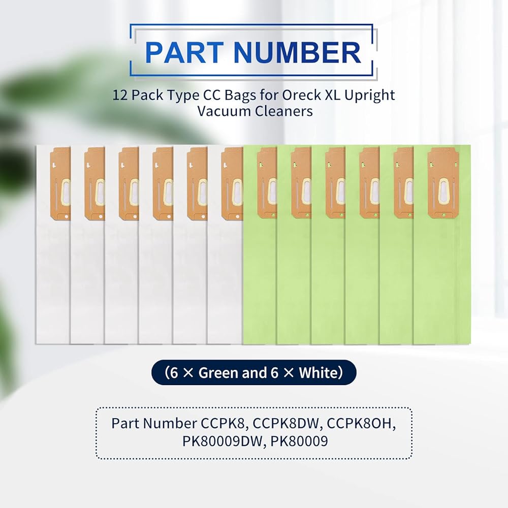 كيباو اكياس مكنسة كهربائية من اوريك اكس ال نوع سي سي، تناسب جميع المكانس الكهربائية العمودية من اوريك XL، قطعة CCPK8، CCPK8OH، CCPK8DW، عبوة من 12 قطعة، اخضر وابيض