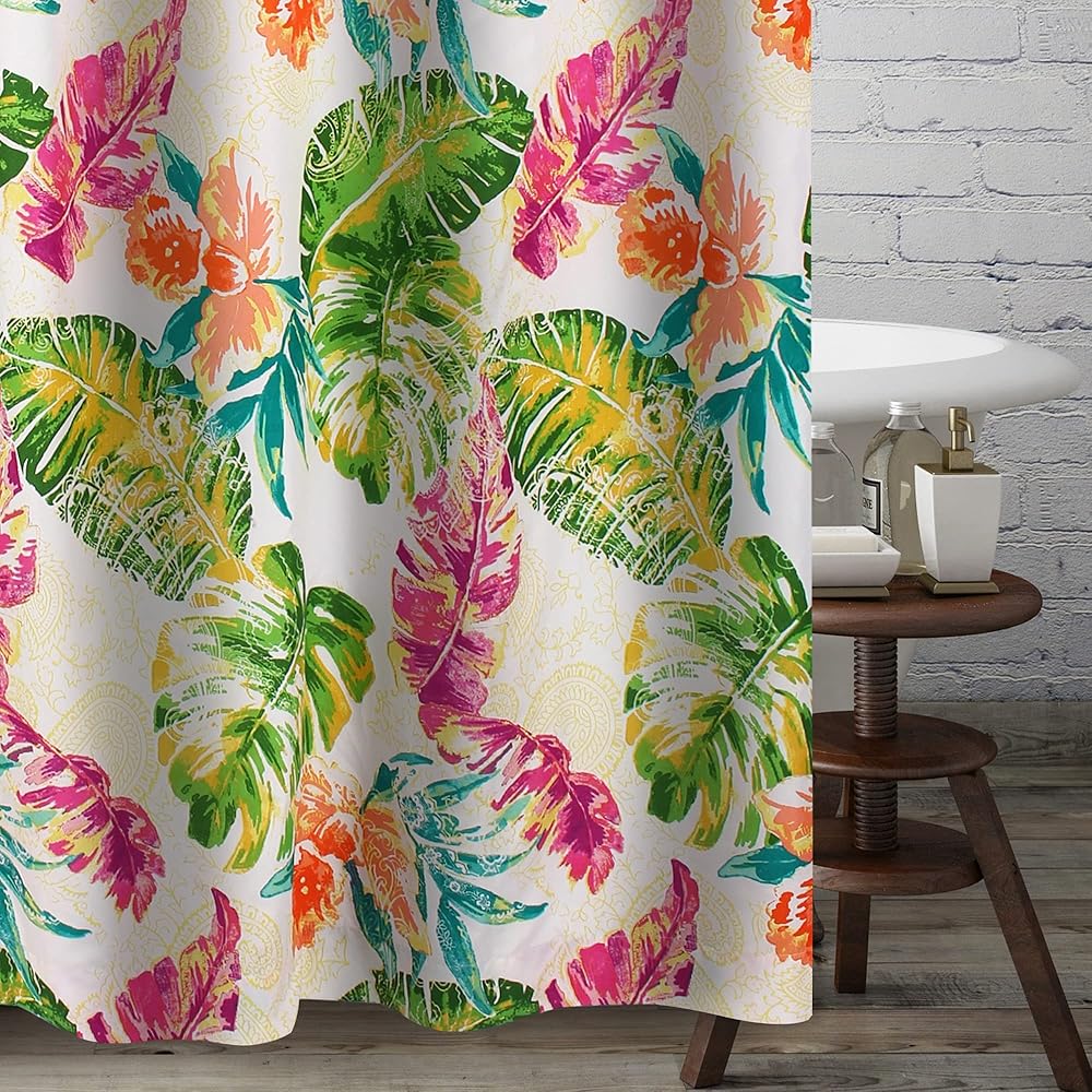Liven up your space with the Tropics window valance. Jungle green, gold, ocean blue, teal, mango, coral and fuchsia create the mood of a bright tropical oasis. This coastal paradise valance will spice up your room. Dimensions: 84 inches wide and 16 inches long, plus a 2-inch header. 100% microfiber polyester face, back (2 ply). Three-inch rod pocket along the top fit most curtain rods for hanging. Machine wash. Imported.