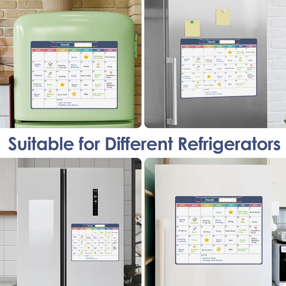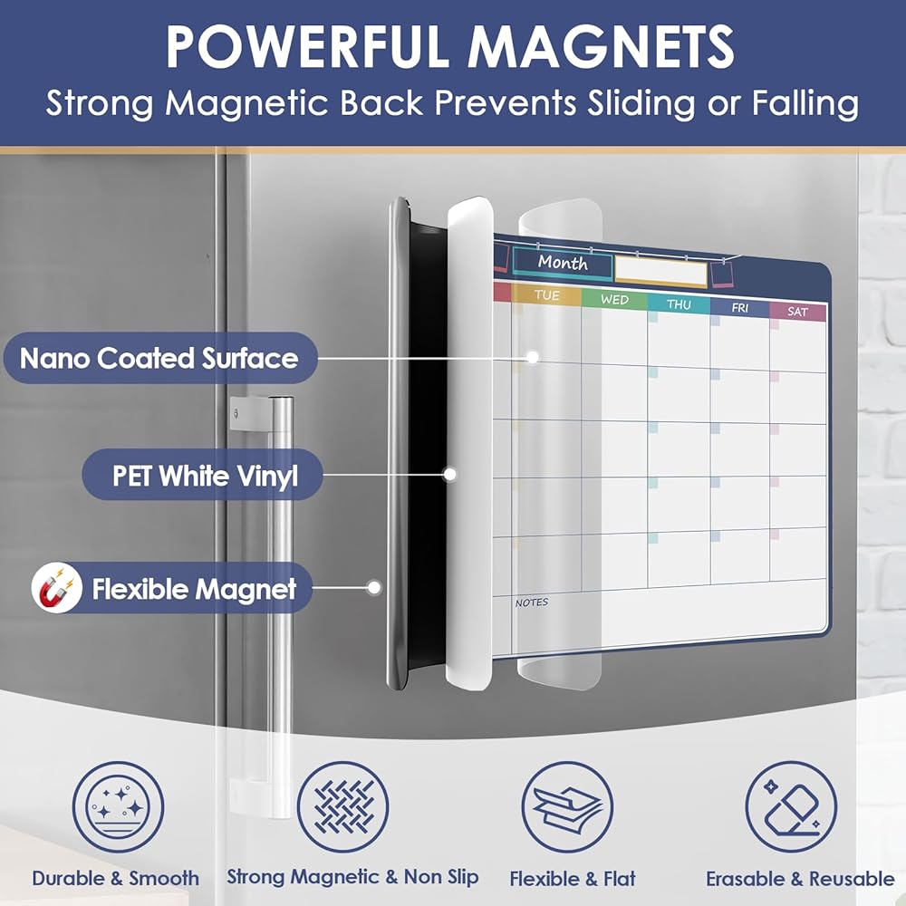 لوح المسح الجاف للثلاجة بتقويم شهري مغناطيسي من MaxGear، سبورة بيضاء مقاس 11 بوصة × 14 بوصة للوحة مغناطيس الثلاجة قابلة للمسح، تقويم السبورة البيضاء، تقويم المهام للبالغين، بدون ملحقات