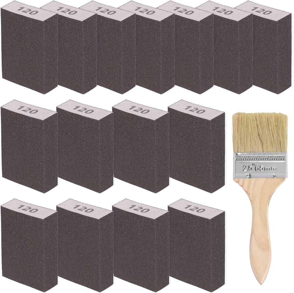 Glarks 16Pcs 80 Grit Sanding Sponge Kit 15Pcs 10x7x2.5CM Washable and Reusable Sanding Blocks and 1Pc Paint Brush Ideal for Wood Working, Drywall Metal Polishing