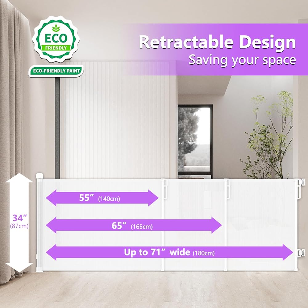 القياس: يبلغ طول البوابة الشبكية القابلة للسحب 86.36 سم مع بوابة شبكية قابلة للتعديل حتى 78 بوصة. البوابة التقليدية لها إطار وسوف تشغل مساحة كبيرة عند عدم استخدامها. لقد قمنا بتصميم إطار البوابة بشكل أقل لتوفير المساحة وتجنب التعثر.