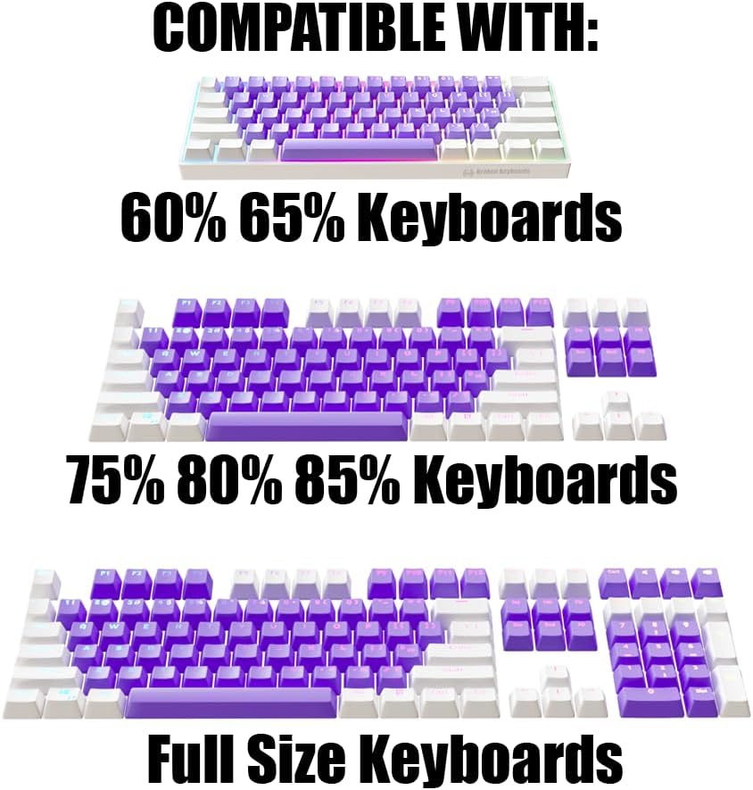 - يناسب 60%، 65%، 75%، TKL (80%) 85%، ولوحات المفاتيح الميكانيكية بالحجم الكامل (يناسب جميع لوحات المفاتيح الميكانيكية)