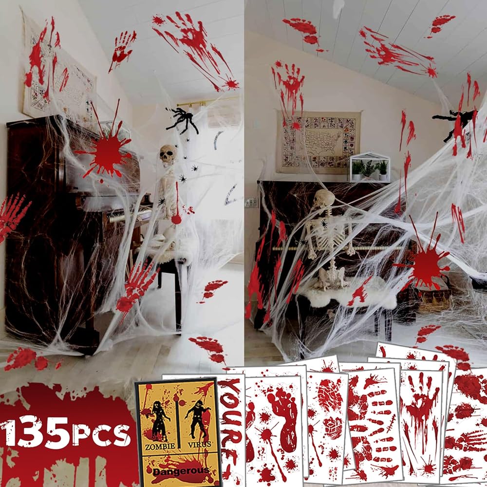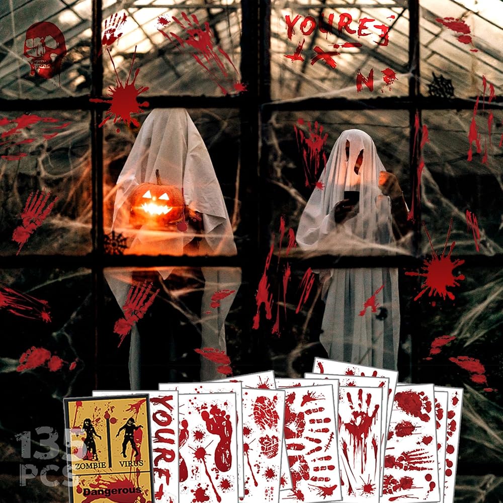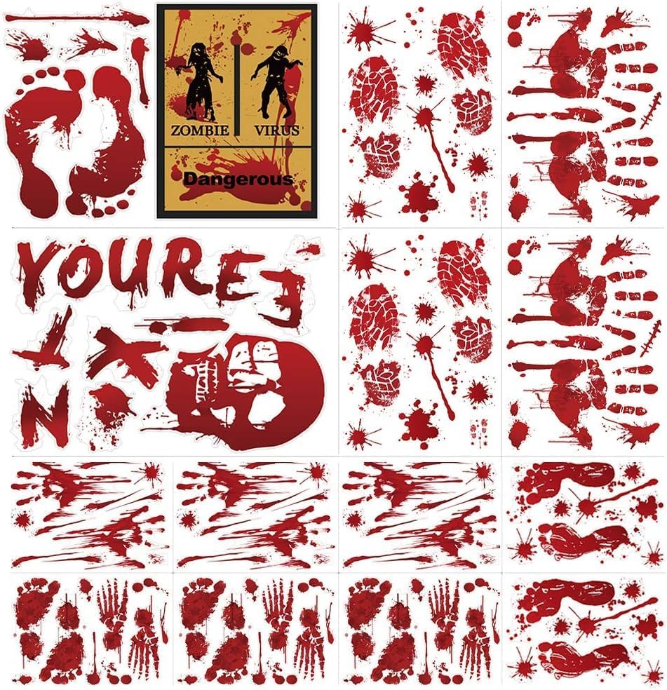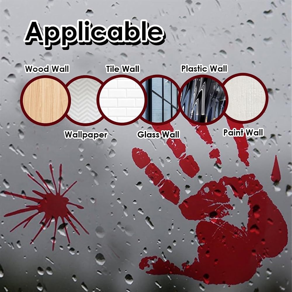 [Set includes] Halloween footprints and handprints decoration are large enough, just like the hands or feet of adults, bringing vivid and real visual impact. The fingerprint size is 8.8 x 7.6 inches, and the footprint size is 9.7 x 2.8 inches. Halloween stickers decoration will make all your neighbors creepy.