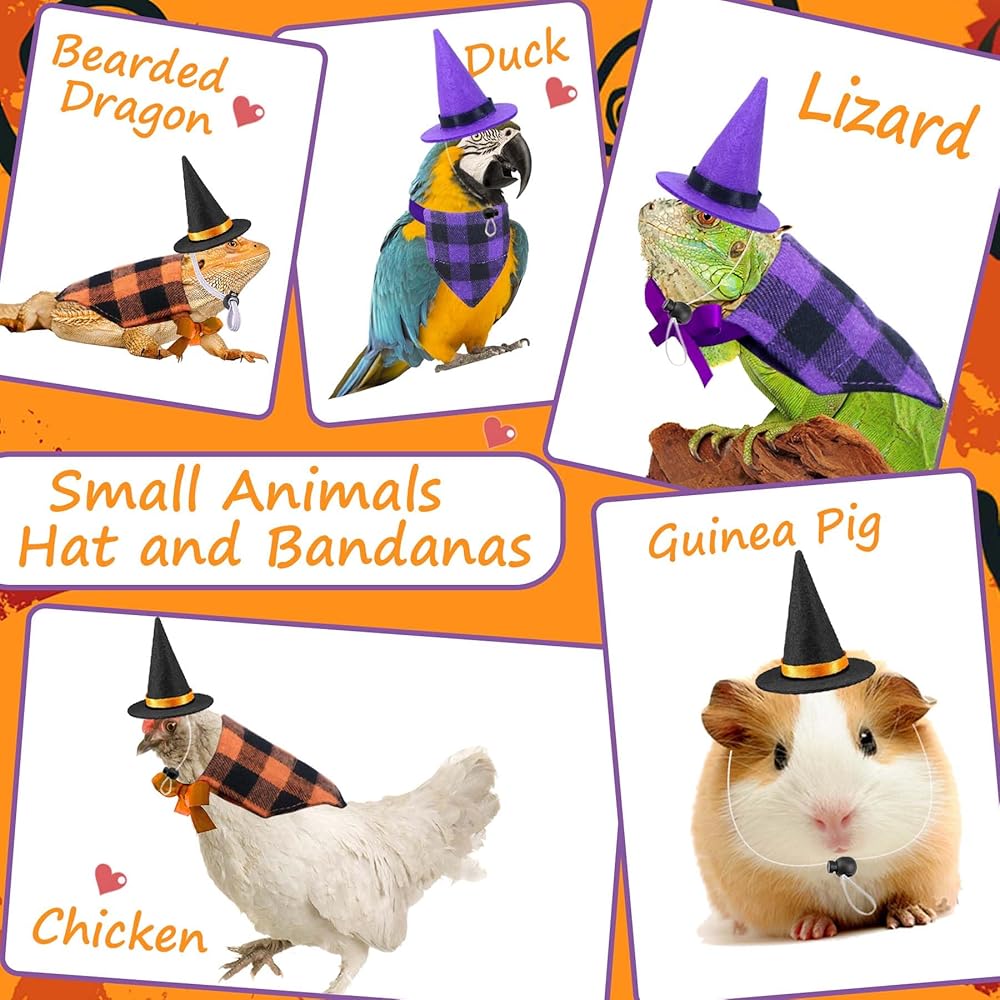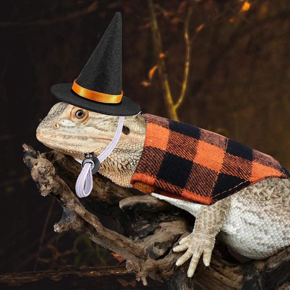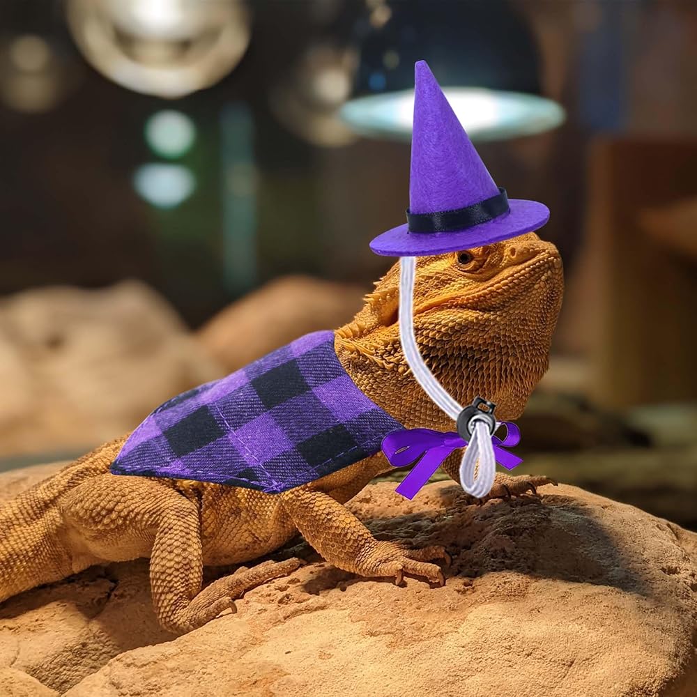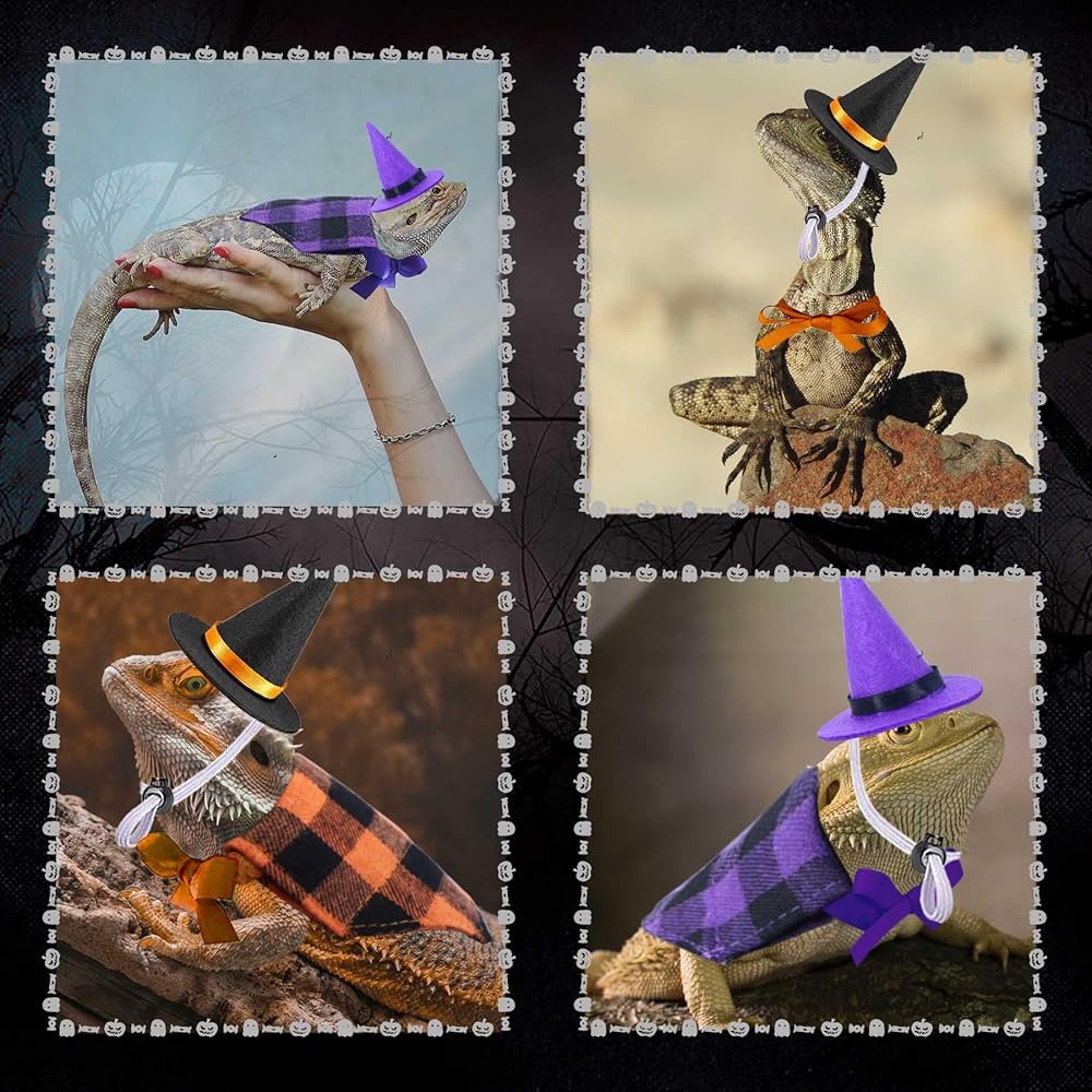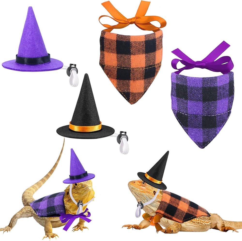 • Bearded Dragon Halloween Costumes: Package includes 1 pcs orange plaid bearded dragon bandana, 1 pcs purple plaid bearded dragon bandana, 1 pcs purple bearded dragon witch hat and 1 pcs black bearded dragon witch hat. These lizard Halloween costumes are suitable for you to dress up your lovely pet.