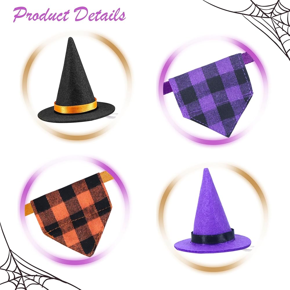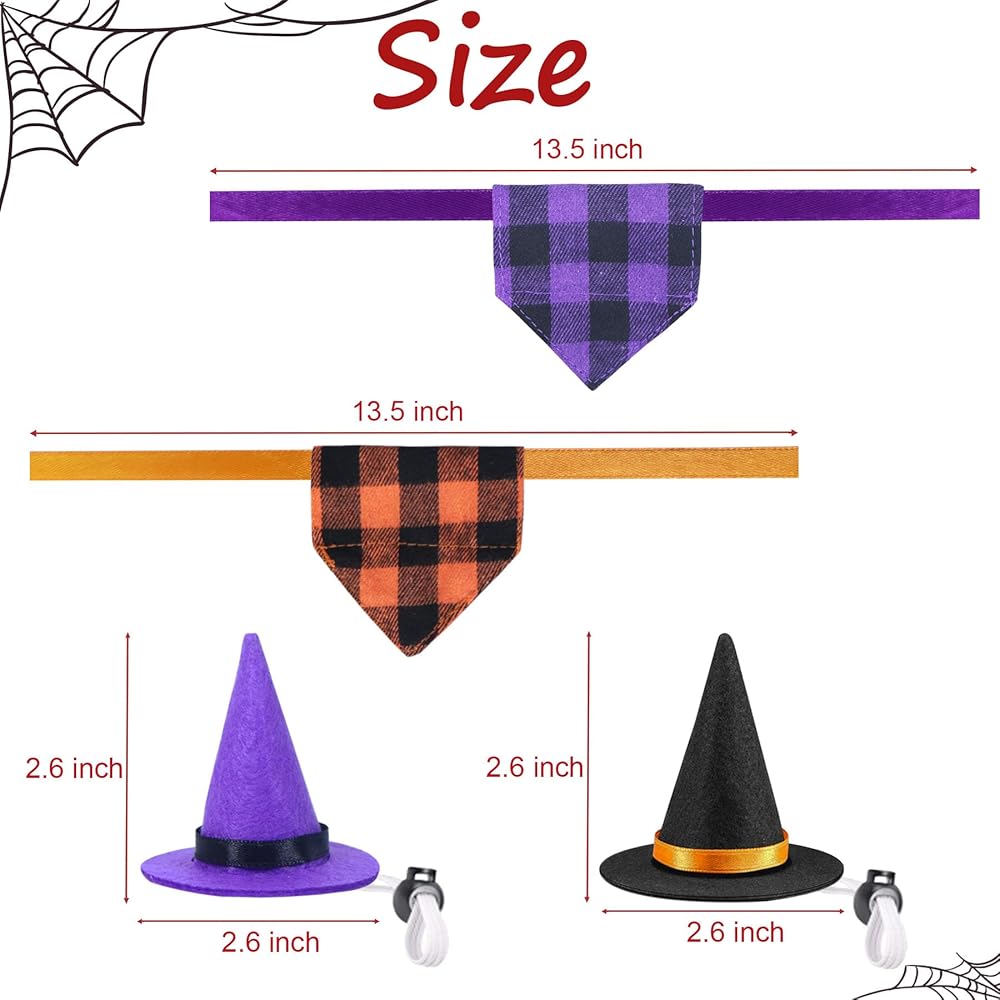 • Halloween Theme Design: The bearded dragon Halloween costume adopts classic orange & black buffalo plaid and purple & black buffalo plaid design, full of festive atmosphere. The adorable witch hat and bandana set will makes your lizard more charming and fashionable on Halloween.