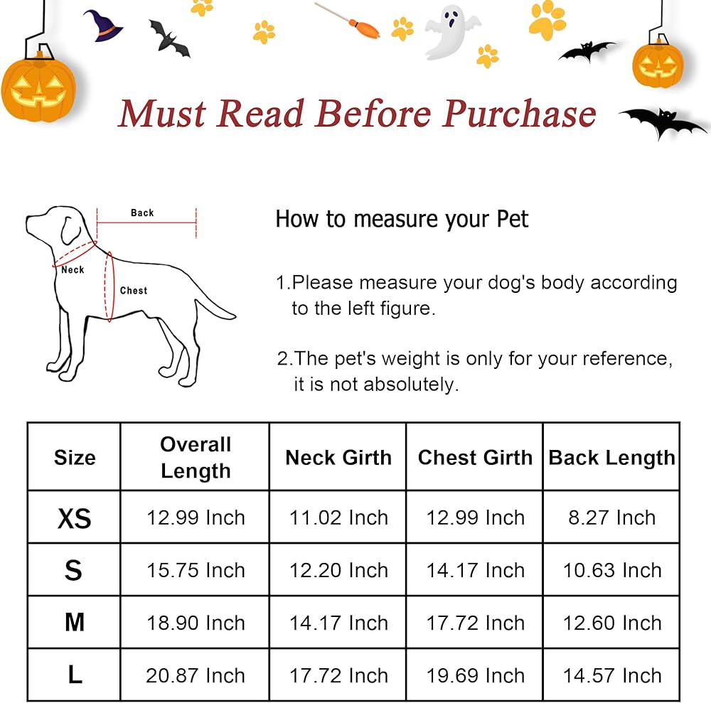 【حجم مثالي】: هذا هو الزي الذي يجسد عواطف كلبك. الحجم: الطول الإجمالي 18.90 بوصة، محيط الرقبة 14.17 بوصة، محيط الصدر 17.72 بوصة، طول الظهر 12.60 بوصة. يرجى قياس مقاسك قبل الشراء. ستكون الهدية المثالية لصديقك ذو الفراء.