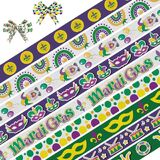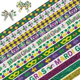 12 Pieces x Mardi Gras Topic Fabric Decorative Ribbons (3/8" Inches wide,1 Yard)