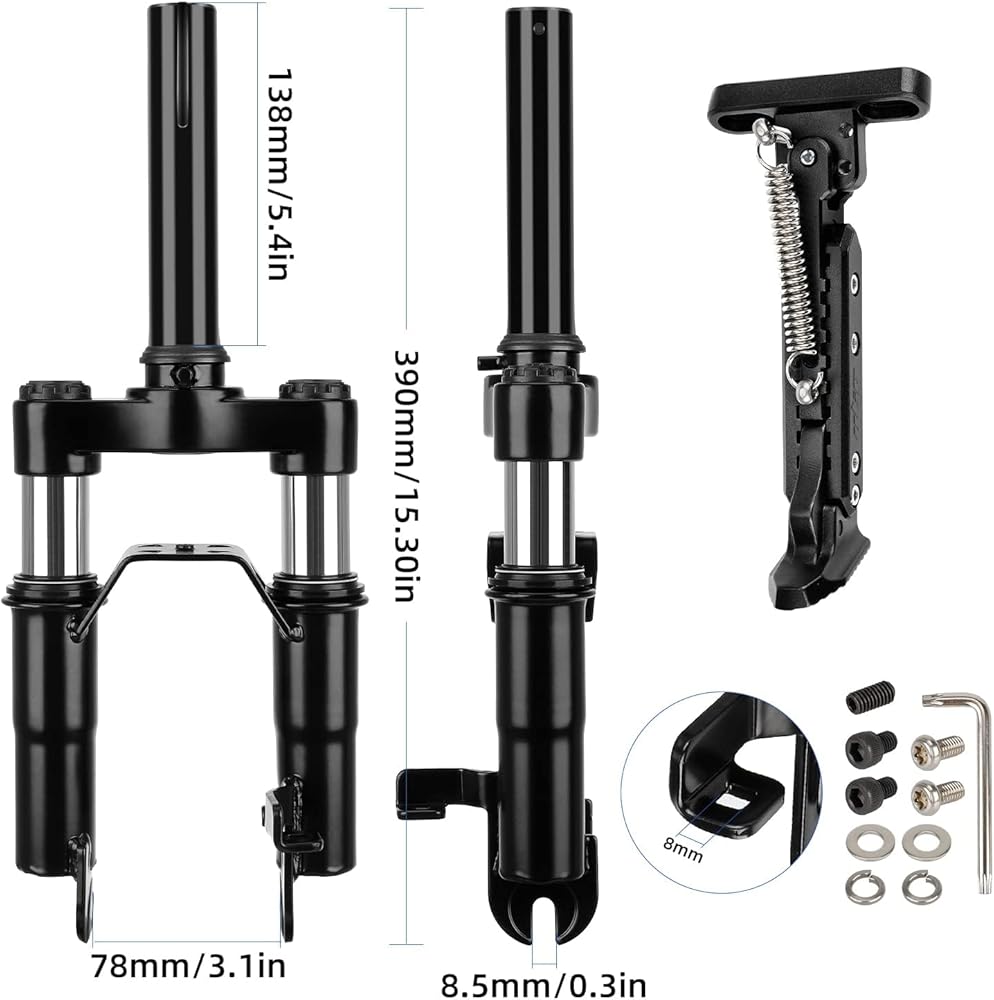 Characteristic:Suitable for Segway Ninebot Max G30 / Max G30E ll / Max G30 LE / Max G30D / G30LP scooters.Non-destructive installation. Once installed, this will not affect normal use and storage of the scooter. More convenient. More sustainable.The footrest comes with the front suspension, which can be easily replaced at any time without having to worry about the footrest being damaged or lostIncrease the road adaptability of the electric scooter, make the driving process smoother and more stable, and the steering is flexible and easy, allowing you to cope with various road conditions with easeThis front shock absorber is made of high strength alloy and has been subjected to anti-rust treatment, impact resistance, corrosion resistance, strength and durability.Specification:Condition: 100% Brand NewItem Type: Electric Scooter AccessoriesMaterial: aluminum alloy + plastic + steelColor: as the picture shownWeight about 2kgSize of the front fork: approx. 40 x 16 x 9.5 cmCrutch size: Approx. 15 x 7 x 3 cmFender size: Approx. 25 x 7 x 4 cmFront headlight size: Approx. 5 x 4 x 3 cmReflective sticker size: Approx. 8.5 x 5 x 0.1 cmPackage list:1 x front suspension fork1 x footrest1 x fender1 x headlamp4 x reflective stickers1 x set of mounting screws
