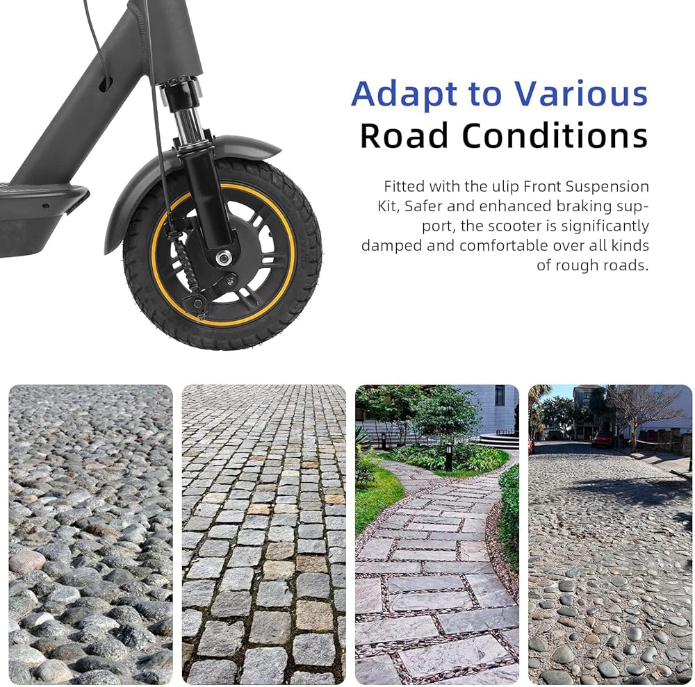Professional cushioning: The shock absorption on the fork of the electric scooter is compact and does not affect the folding of the electric scooter or the directional control.