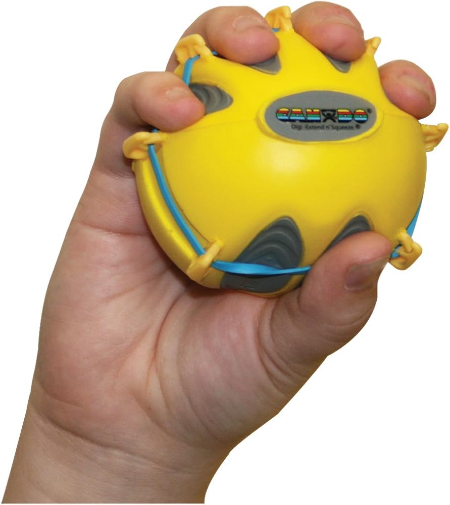 CanDo Digi-Extend n' Squeeze Hand Exerciser combines best features of Digi-Extend and Digi-Squeeze. It helps to develop isolated finger strength, flexibility and coordination. Provides complete reciprocal exercise program (flexion and extension). Ergonomic ball-shape positions fingers and hand for ideal pressure distribution. Each exercise comes with exercise pamphlet. CanDo Digi-Extend n' Squeeze available in 3 sizes. Each size available in 5 color-coded resistance levels for flexion. Each unit is packaged standard with latex free extension bands covering 4 color-coded levels from the lightest to heaviest extension requirements.