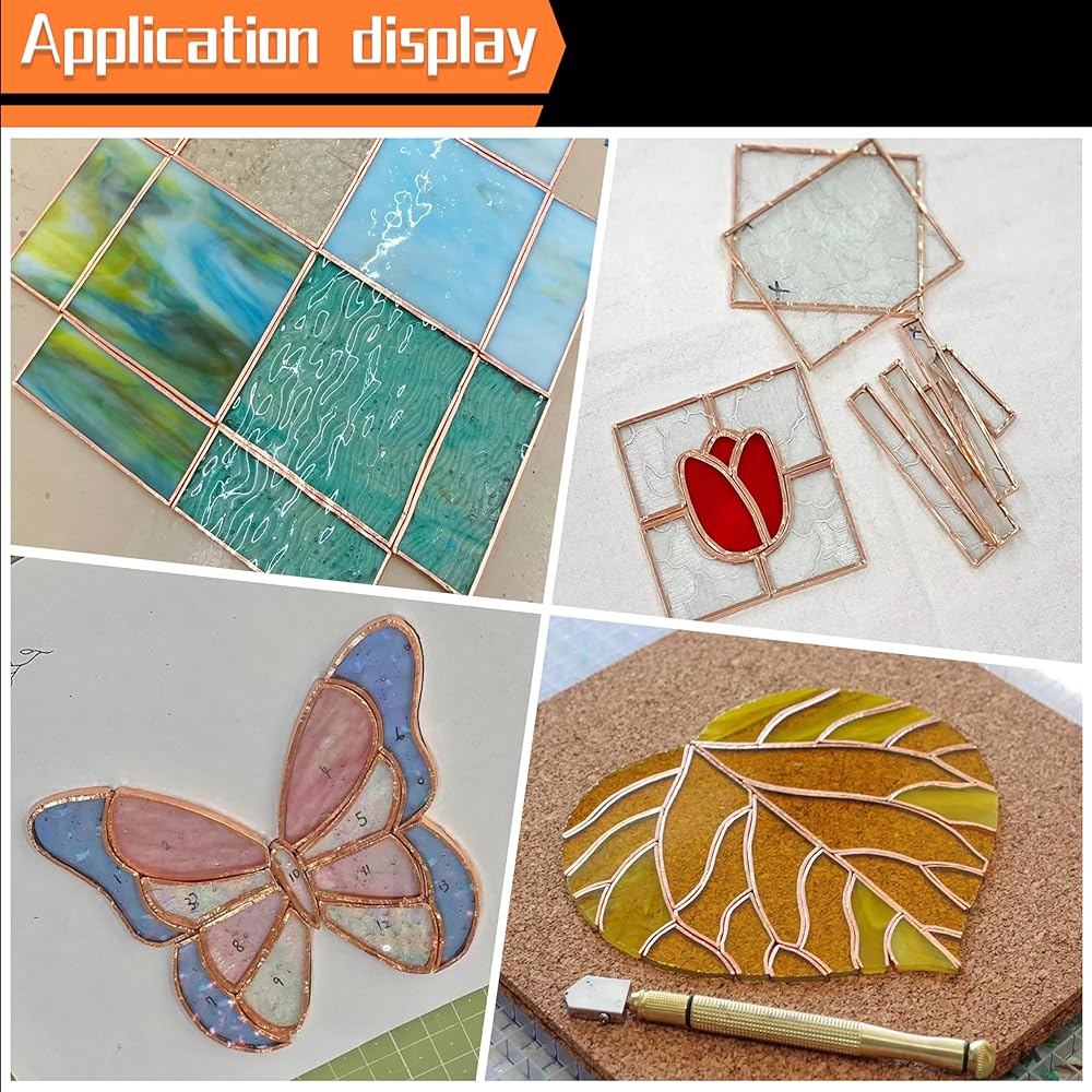 تتضمن الحزمة: 2 لفات من رقائق النحاس و1 قطعة ملمع بلاستيكي من الزجاج الملون