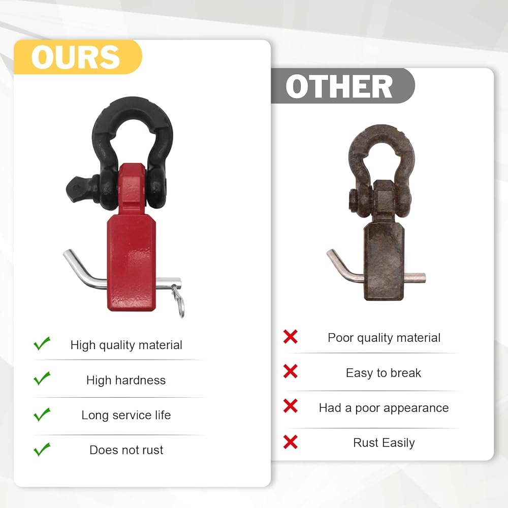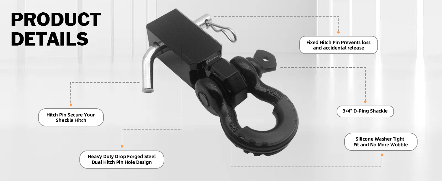 استخدام واسع النطاق: يتميز بدبوس لولبي مقاس 5/8 بوصة، وعازل تكبل 3/4 لجعله أكثر ثباتًا، ويمكن أن تكون فتحات دبوس الربط المزدوجة مرنة لتوصيل الحلقة D أفقيًا أو رأسيًا يمكنها التعامل مع أي وظائف تعافي أو سحب.