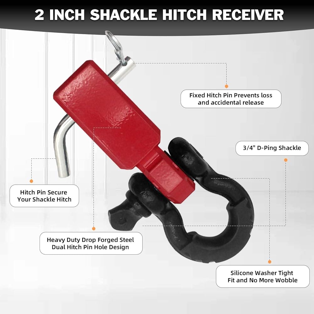 قائمة التعبئة: تشتمل مجموعة جهاز استقبال وصلة السحب على حلقة على شكل حرف D مقاس 3/4 بوصة، ومستقبل وصلة ربط مقاس 2 بوصة، ودبوس قفل مقاس 5/8 بوصة، وقطعة واحدة من مشابك الأمان، وقطعتين من الغسالات.