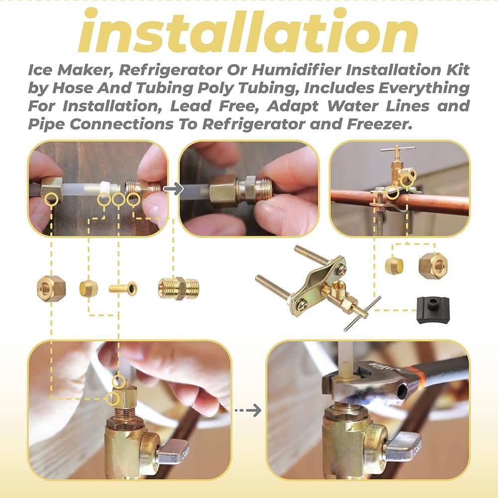 مجموعة تركيب جهاز ترطيب الهواء والثلاجة وصانع الثلج بواسطة خرطوم وأنابيب بولي، تتضمن كل شيء للتركيب، خالية من الرصاص، تكييف خطوط المياه ووصلات الأنابيب بالثلاجة والفريزر