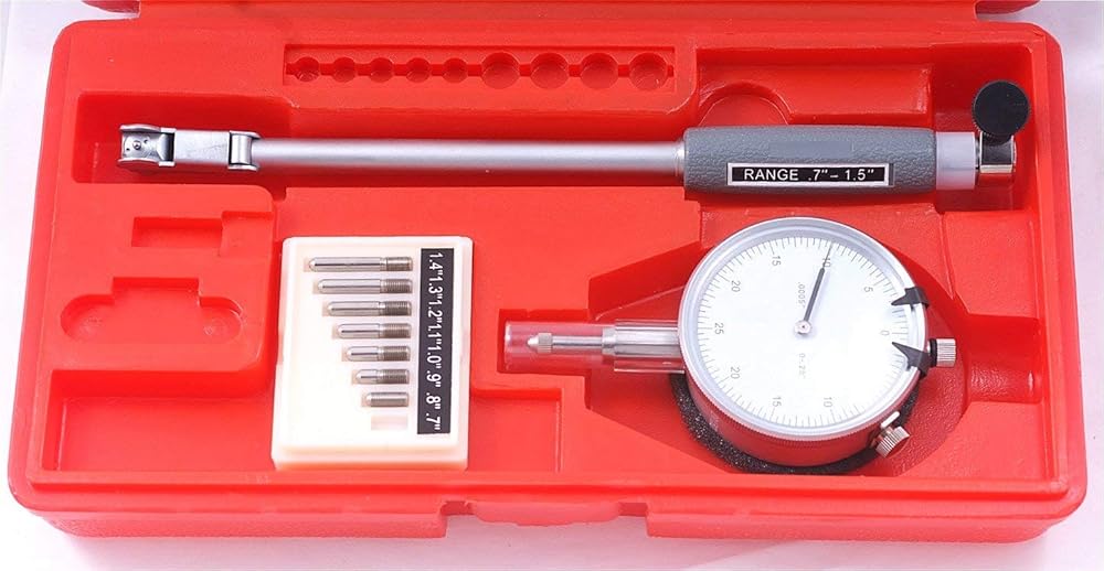 0.7-1.5" Dial Bore Gage ~ .0005" Graduation ~ 6" probe depth. ~ 9 anvils included. ~ for close tolerance measurements of holes, taper and roundness. ~ Gages are supplied with an AGD Group II dial indicator. ~ Easy setting with micrometers or ring gages. ~ Self centering. ~ Fitted case with anvils index.