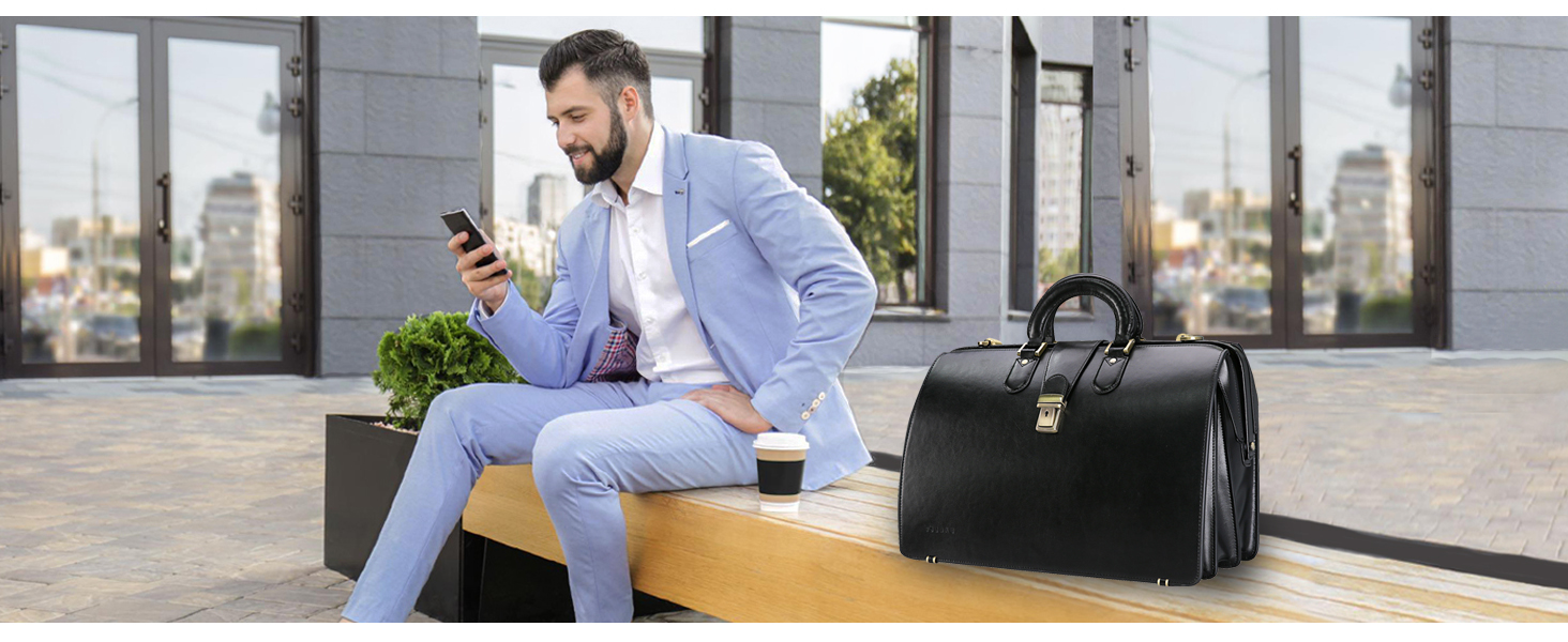 • Leather Messenger Bag for Men: It's made of genuine leather, durable cotton polyester twill lining and rust-proof zinc alloy hardware. This leather brief case is beautifully designed in a vintage brown look with wear-resistant edge paint.
