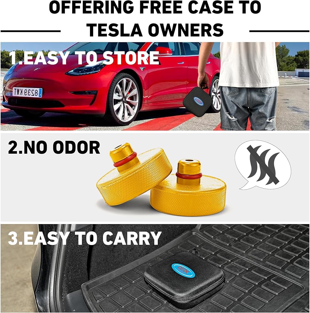 🚗【سهلة الاستخدام】: ما عليك سوى إدخال الوسادة في منتصف فتحة الرافعة في سيارتك ووضع مقبس تيسلا تحتها. اضبط ارتفاع وموضع وسادات ذراع الرفع للتأكد من أنها في الموضع الصحيح. من السهل تفكيك وسادات الرافعة هذه ولا تتلف بسهولة عند تفكيكها. مع مجموعة وسادة جاك هذه، يمكنك بسهولة رفع سيارتك في المنزل.