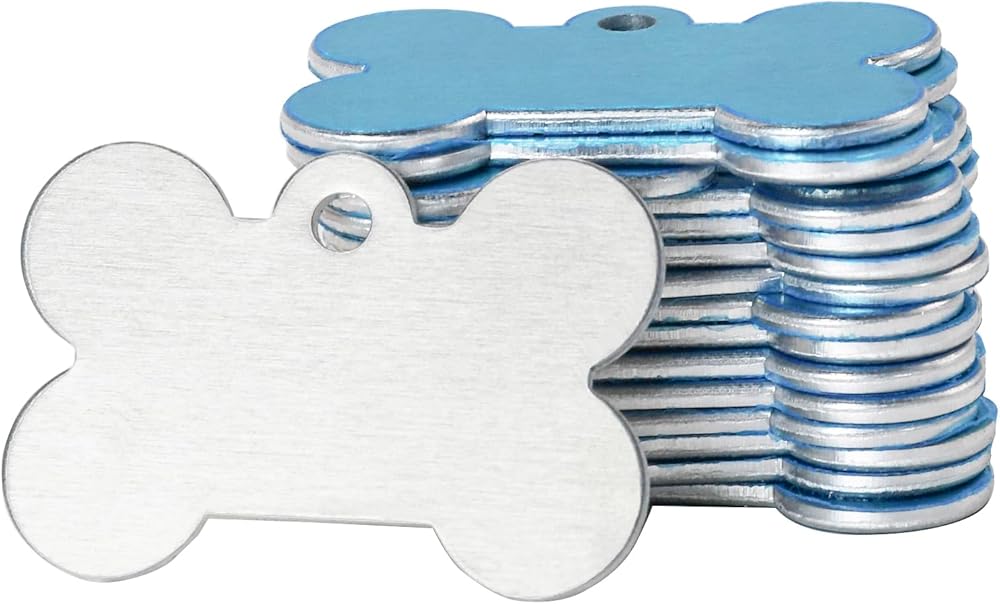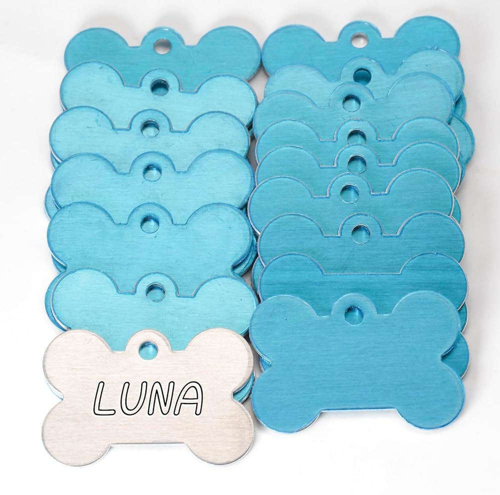 1.5 بوصة * 1 بوصة الألومنيوم ختم الفراغات الكلب العظام العلامات اسم معرف الحيوانات الأليفة مع ثقب واحد 14ga. حواف نهائية وناعمة لصنع مجوهرات سلسلة المفاتيح - عبوة من 30 قطعة
