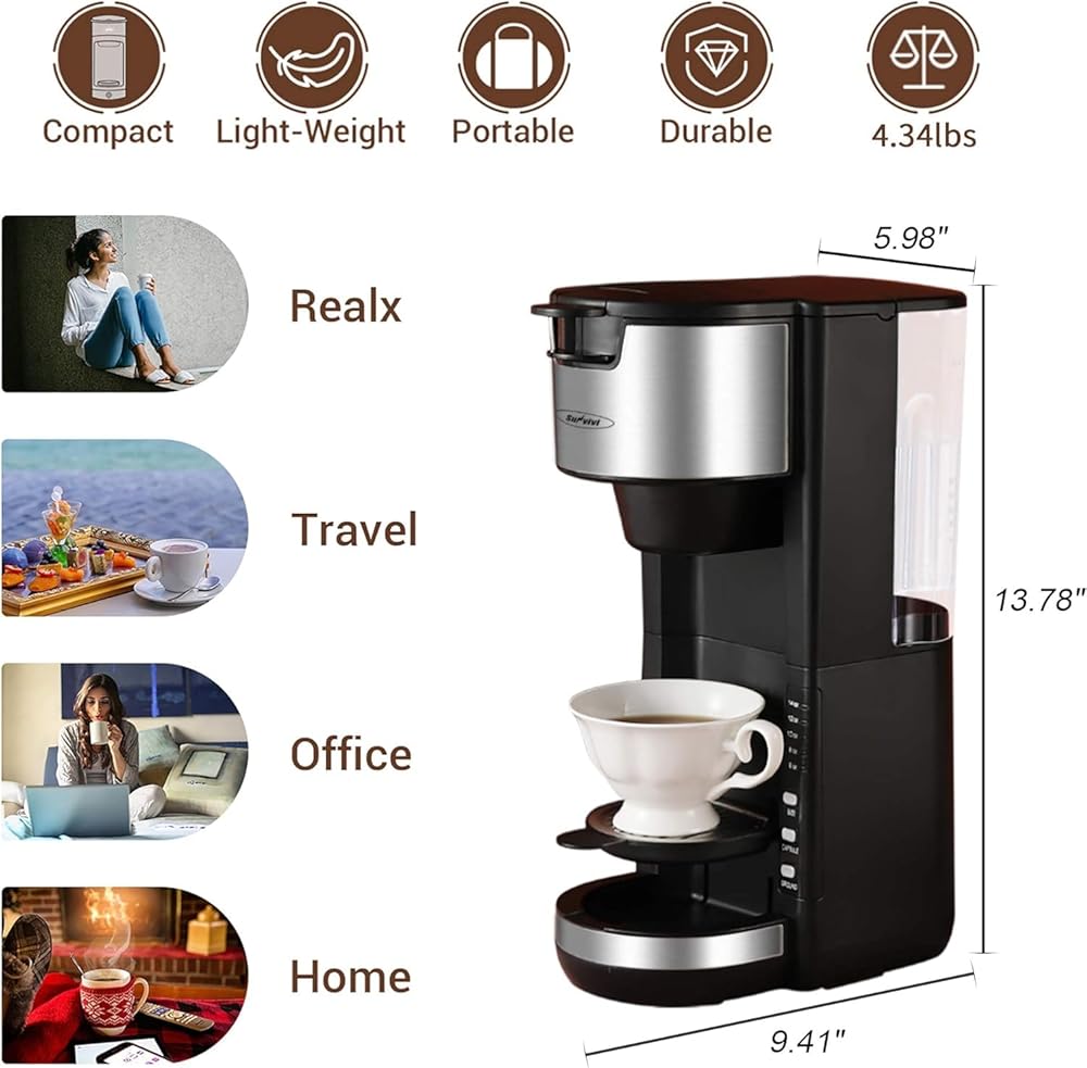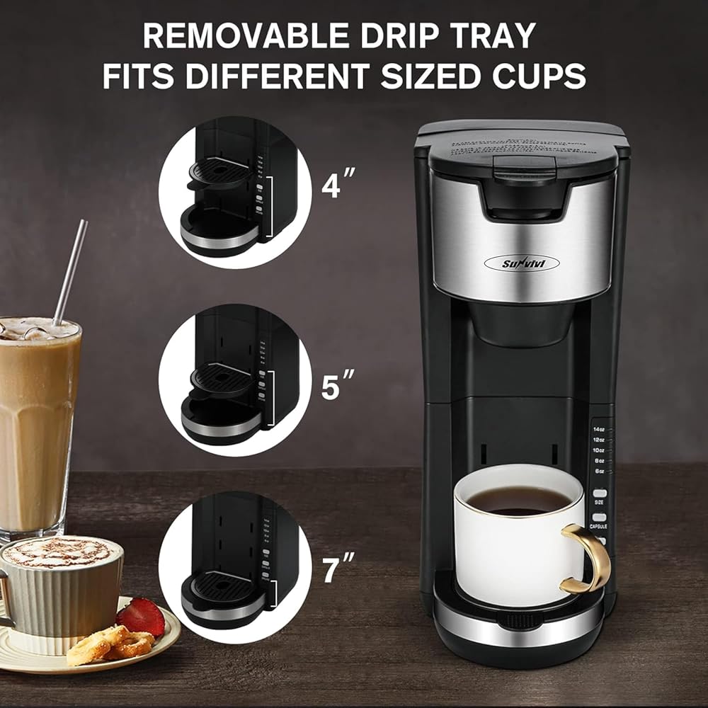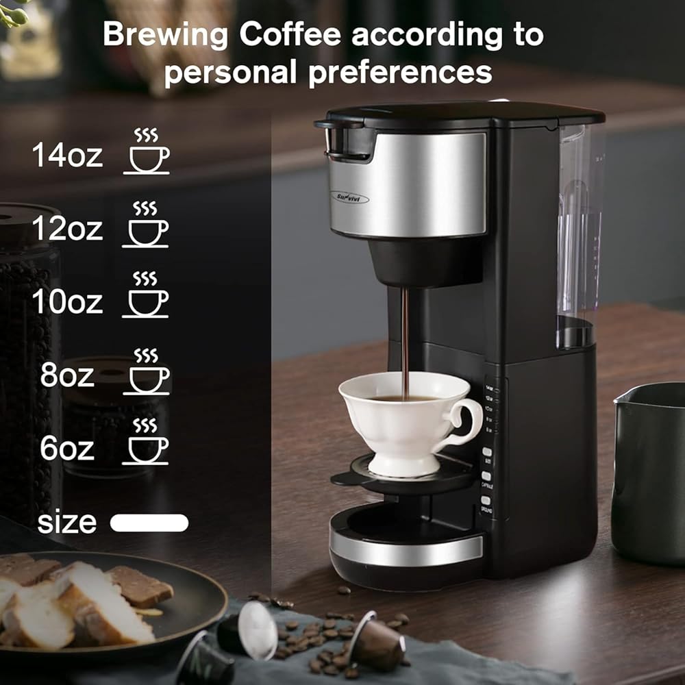 Multi-cup Size: Coffee machine Comes with a 30 oz removable water tank for any cup size between 6-14 oz, whether it's a strong shot to kickstart your day or a mellow sip to unwind, the power is in your hands to curate your coffee experience.