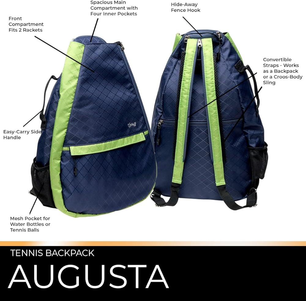 حقيبة ظهر للتنس من Glove It للنساء، حقيبة تنس خفيفة الوزن للسيدات وحقيبة ظهر بحزام لمضاربين وكرات وزجاجة مياه