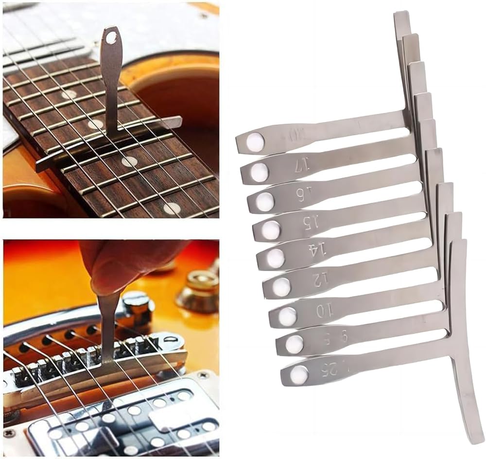 🎵【مجموعة أدوات الجيتار اللوثير】 تتضمن مجموعة الأدوات اللوثير هذه 9 مقاييس نصف قطر سفلية شاملة لإعداد الجيتار الخاص بك، مريحة للحمل والتخزين.