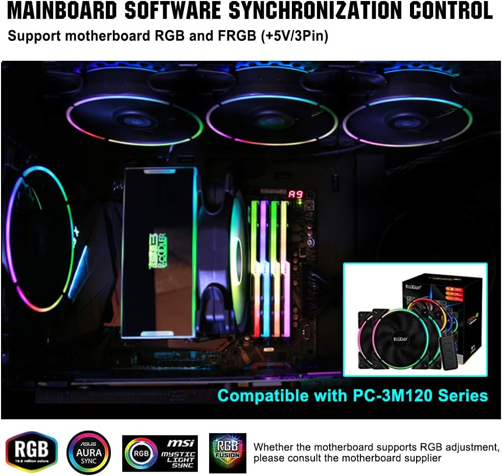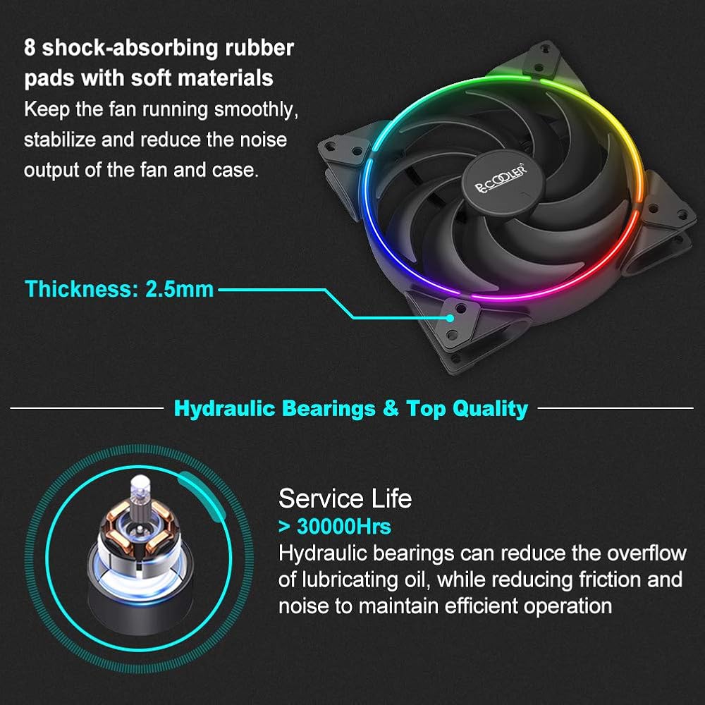 PCCooler 140mm Fan Moonlight Series ، PC -M140 RGB LED PWM Fan مع Halo من جانب الثنائي - Silentpro 9 Fan Blade - Hydraulic Bearing - مروحة Case Computer عالية الأداء (سلسلة PC -3M120 متوافقة)