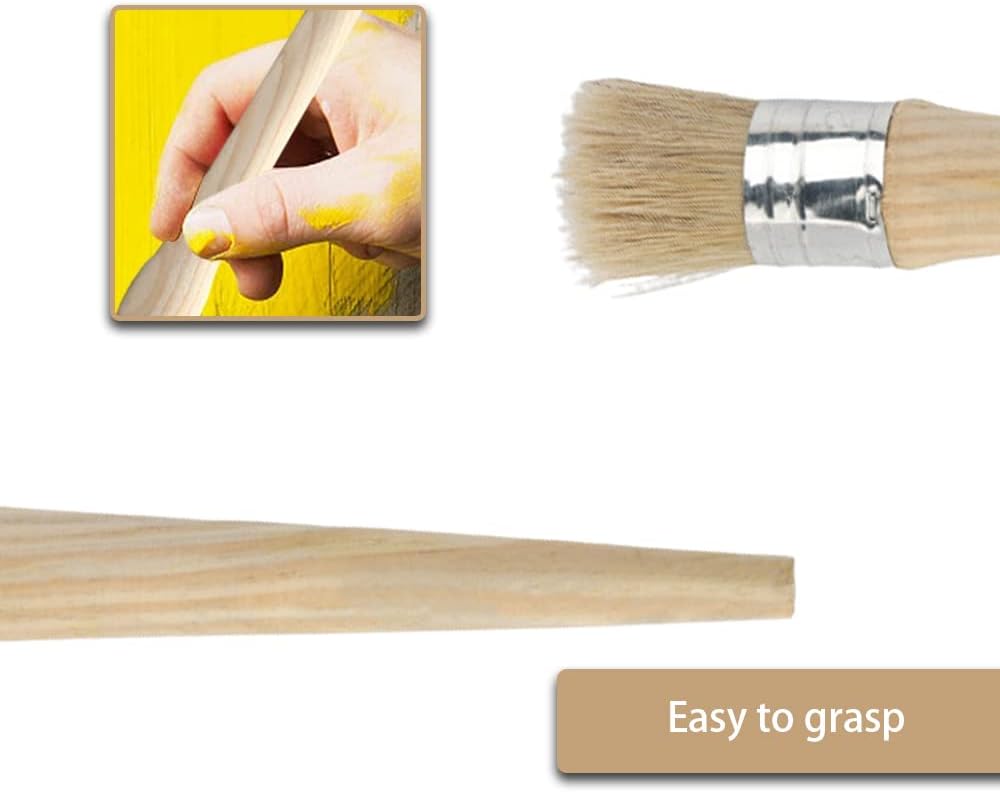 【Quality Material】Natural bristle round paint brush is made of high temperature resistant pure pig hair, it has high hardness and is not easy to curl. Wooden handle is smooth and comfortable to hold. It is wear-resistant, absorbs and releases paint well, and at the same time can easily and evenly apply paint to other objects.