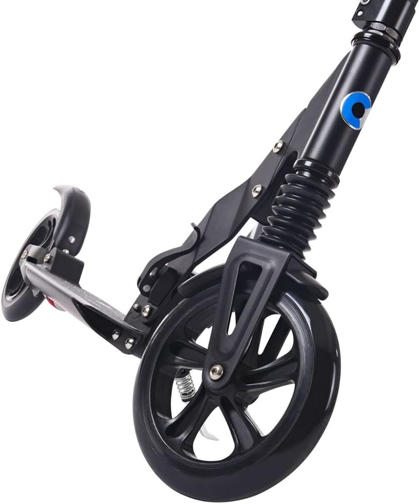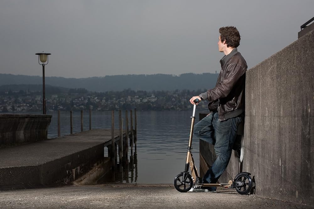 لوح كيك صغير - سكوتر معلق - سكوتر صغير ذو عجلتين، قابل للطي للحمل، بتصميم سويسري للمراهقين والبالغين بعجلات كبيرة ونظام تعليق حاصل على براءة اختراع للأعمار من 13 عامًا فما فوق (أسود)