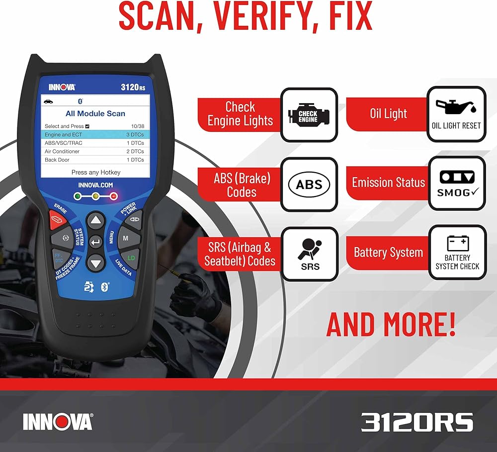 الحفاظ على أعلى مستوى من الأداء والسلامة على الطريق - يساعدك الماسح الضوئي 3120RS Obd2 من Innova على العثور على المشكلة بسهولة وحل المشكلة. يمنحك تطبيق قارئ رمز السيارة المضمن، RepairSolutions2، حلولًا في الوقت الفعلي لاستكشاف مشكلات السيارات وإصلاحها. احصل على إصلاحات تم التحقق منها من ماسح الكود هذا، وابحث عن الجزء المحدد المطلوب للإصلاح وقم بشرائه، واعرض جداول الصيانة، واستلم النشرات الفنية، وعمليات الاستدعاء، وتمتع بإمكانية الوصول إلى قاعدة بيانات Innova الأفضل في فئتها.
