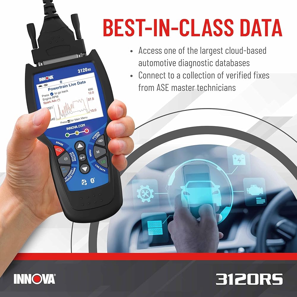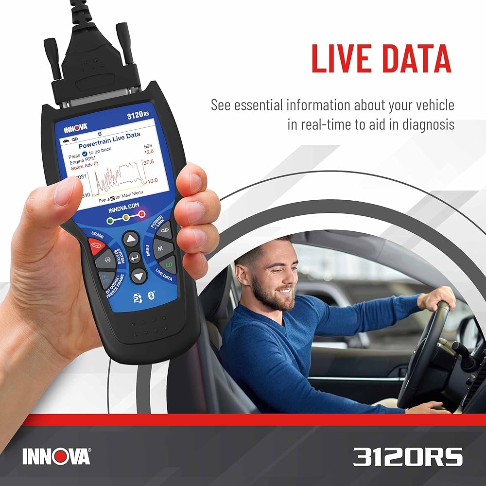 بيانات حية لمزيد من التشخيص الدقيق - مع قارئ Innova 3120RS Obd2، يمكنك رؤية المعلومات الأساسية لسيارتك مثل عدد الدورات في الدقيقة والسرعة ودرجة حرارة الزيت في الوقت الفعلي للمساعدة في تحديد المشكلات وتصحيحها. يمكنك أيضًا فحص واختبار البطارية والمولد الكهربائي، حتى تعرف ما إذا كنت بحاجة إلى إحضار سيارتك إلى فني أم لا.