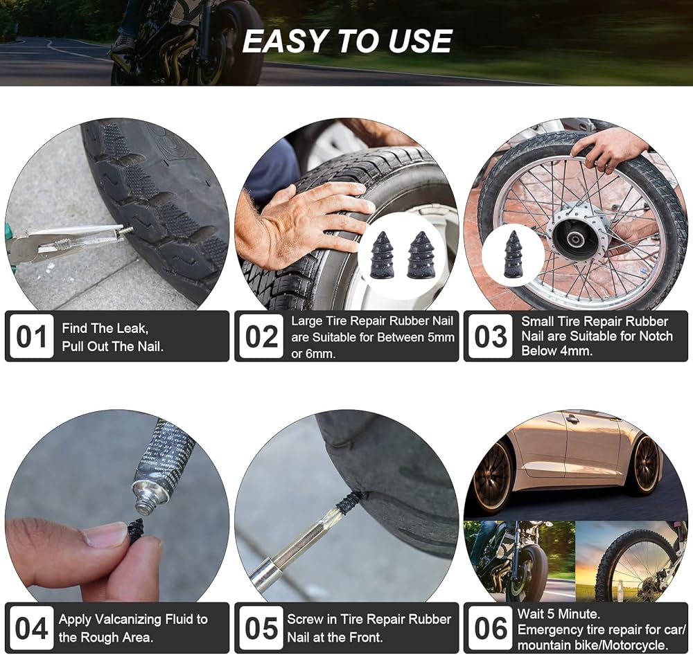Sereable and well-made: he auto tire nail is made of metal and rubber, hard to tear or wear, high temperature resistant dness, not easy to fall off, serviceable and reliable, helpful to repair your tire, which can accompany you for a long time .